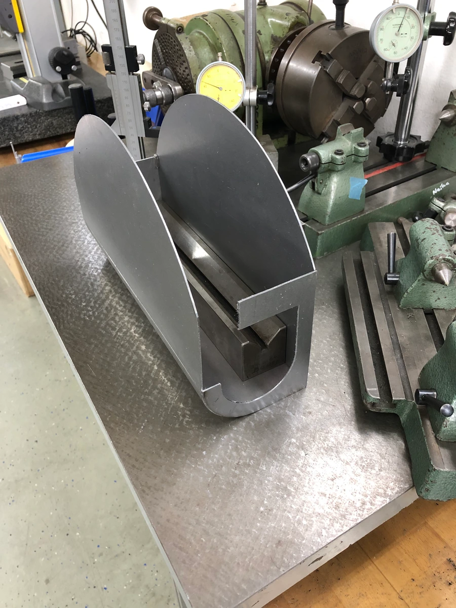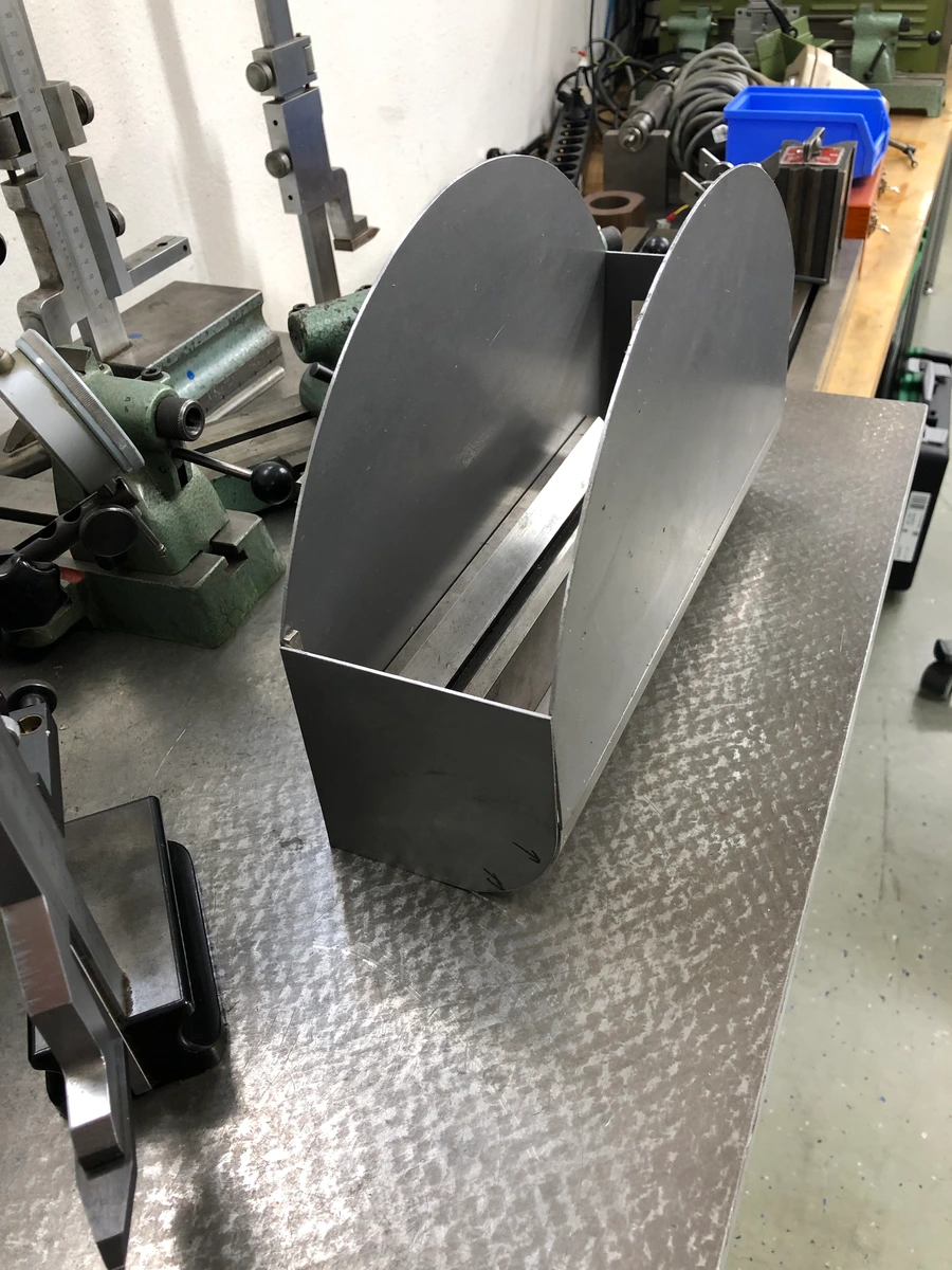 Das mal so als nächster Schritt. Jetzt kann ich morgen das Unterteil mit dem gewalzten Radius auf Länge bringen und den hinteren Deckel innen fertig machen auf Kontur. Soweit bin ich zufrieden.