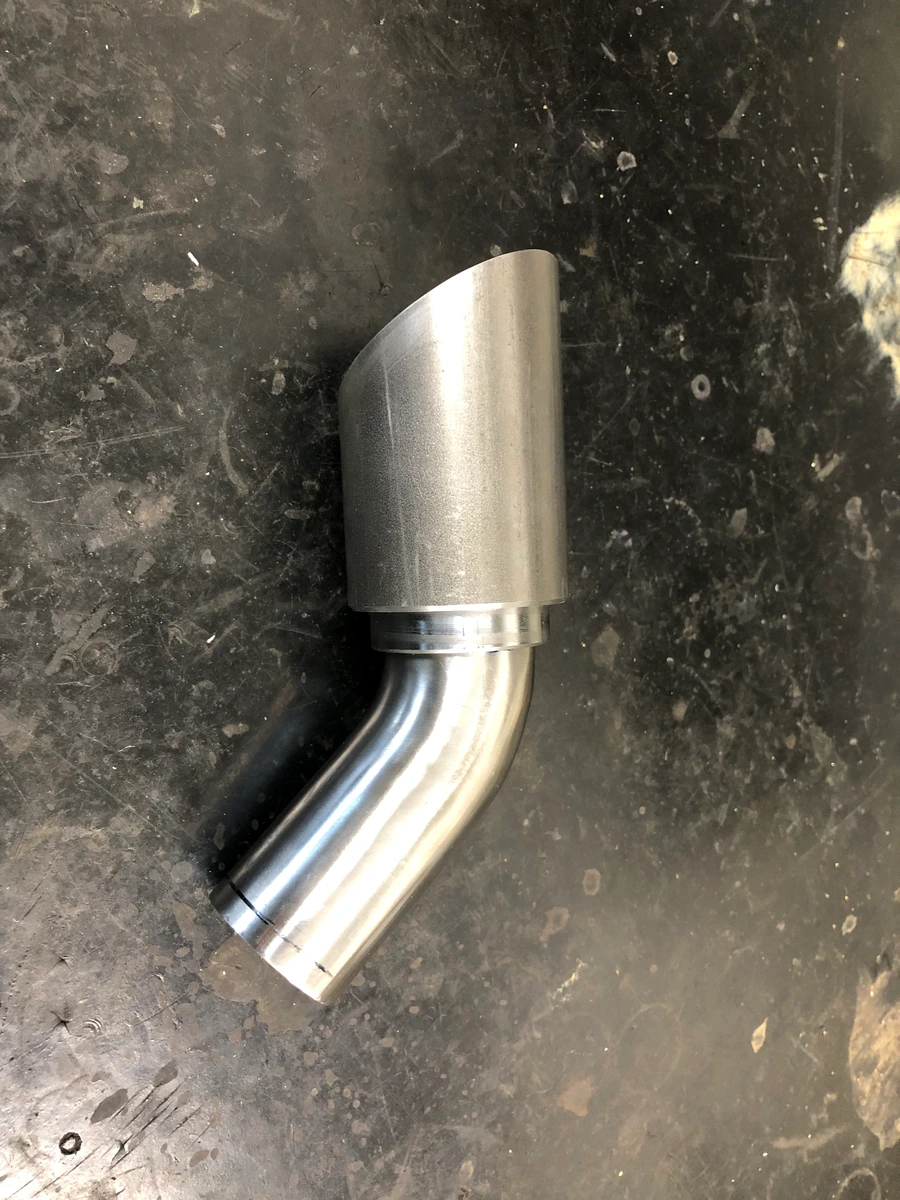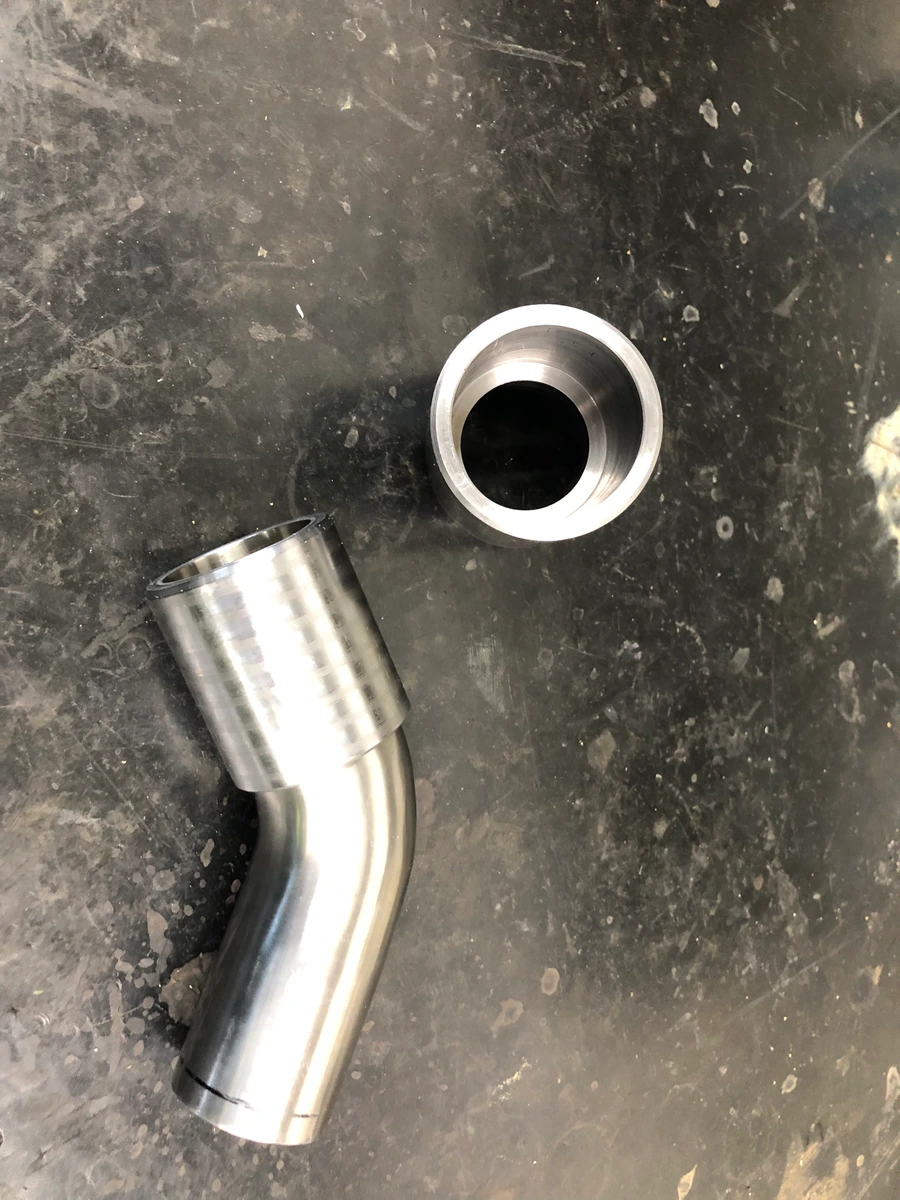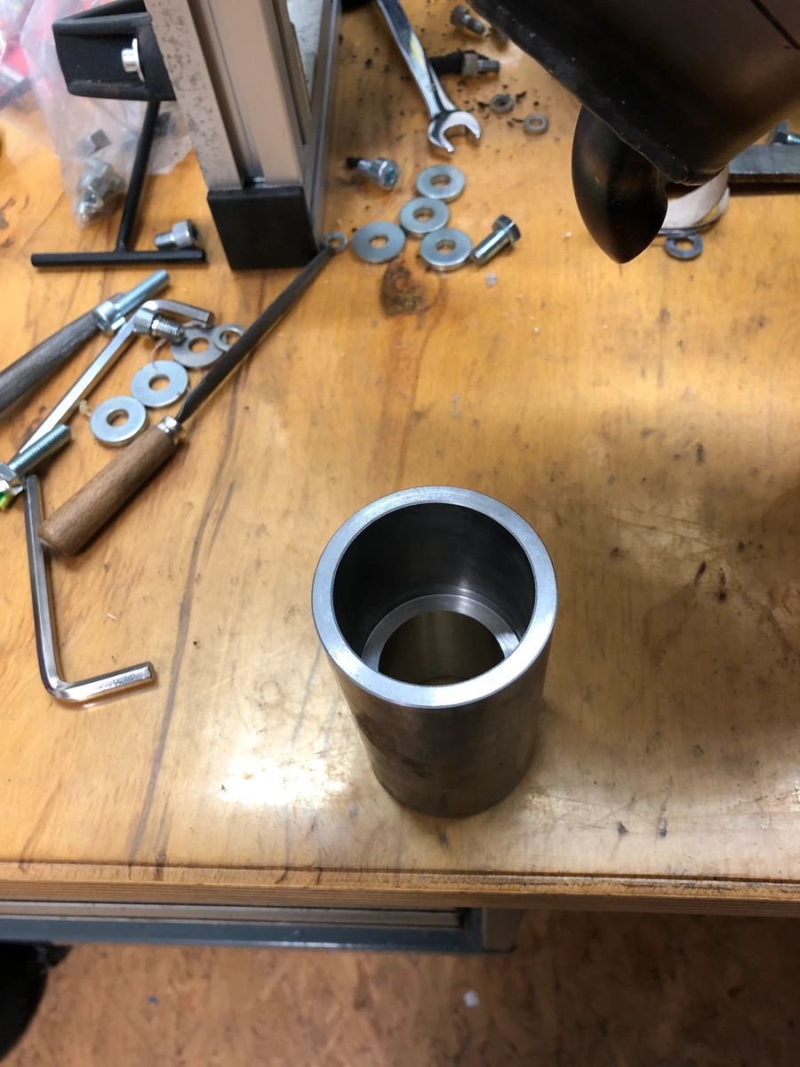 Muffe hat 45,2 gekriegt, Hülse genau 45. Damit habe ich etwas Luft wegen Schweißverzug. Wer weiß, bei meinem Glück verzieht sich das und ich kriege das nicht zusammen, wenn ich es zu eng mache.