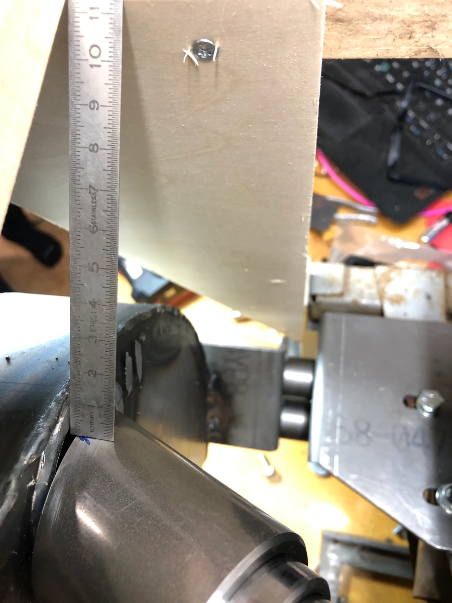Den unteren Abschluß habe ich dann etwas breiter gelassen und durch die Rollenmaschine gelassen, bis der Radius gestimmt hat. Das Ding ist jetzt noch 3 cm oder so zu lang, aber ich wußte nicht, ob es mir das Blech verdreht und dann wäre es blöd gewesen, wenn ich die finale Breite schon geschnitten gehabt hätte. Ich hatte mir das sparen können, weil es parallel durchlief, aber gut. Ablängen geht immer:
