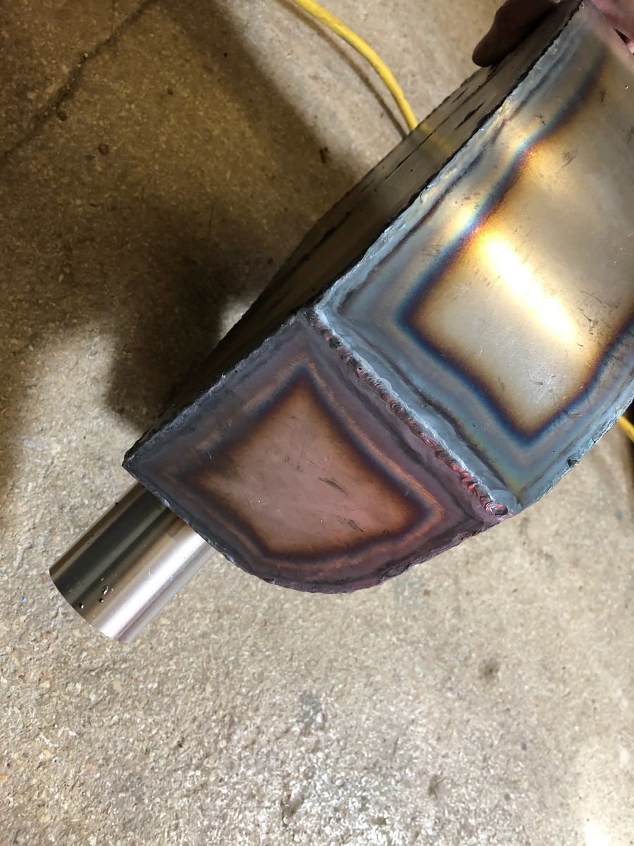 Wenn das Ding verschweißt ist, kuck ich mal, wie blechern das noch klingt. Ggf. kommt noch ein Versteifungsblech flach auf den großen Deckel zum Aussteifen, das habe ich bei Posch gesehen. Der reduziert damit auch Schwingungen an größeren Flächen an seinen Boxen.