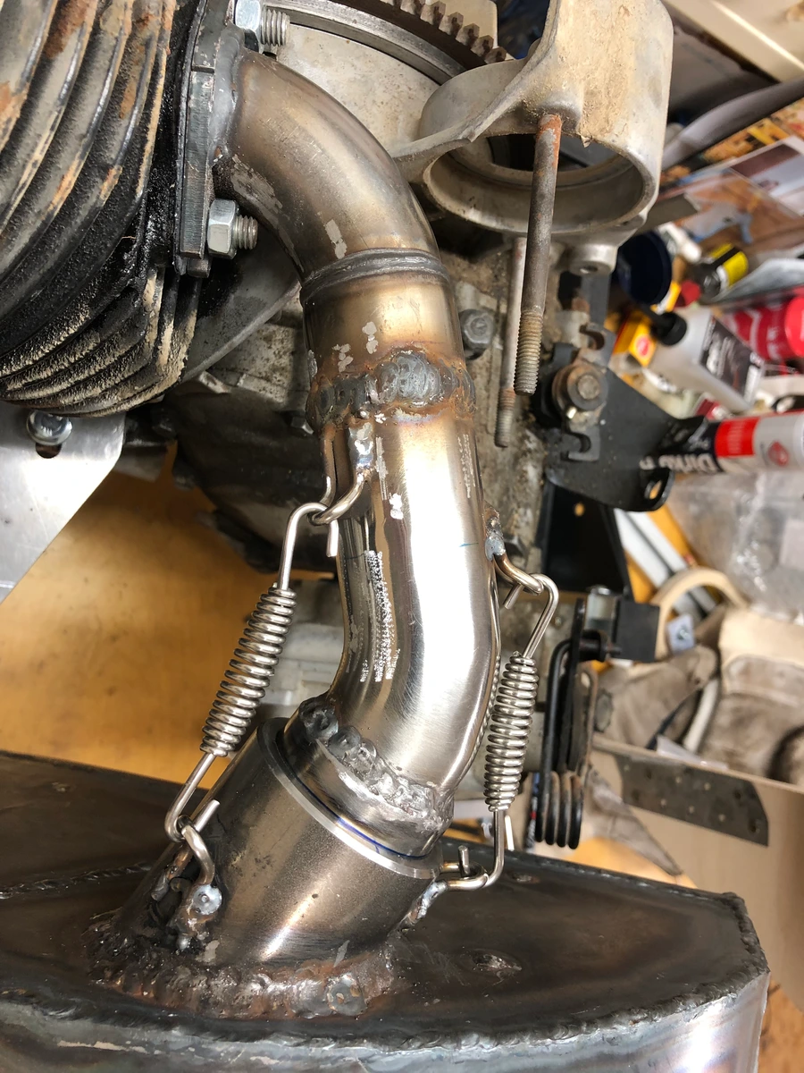 Jetzt muß noch der Krümmer fertig geschweißt werden und die Haken für die Federn dran.