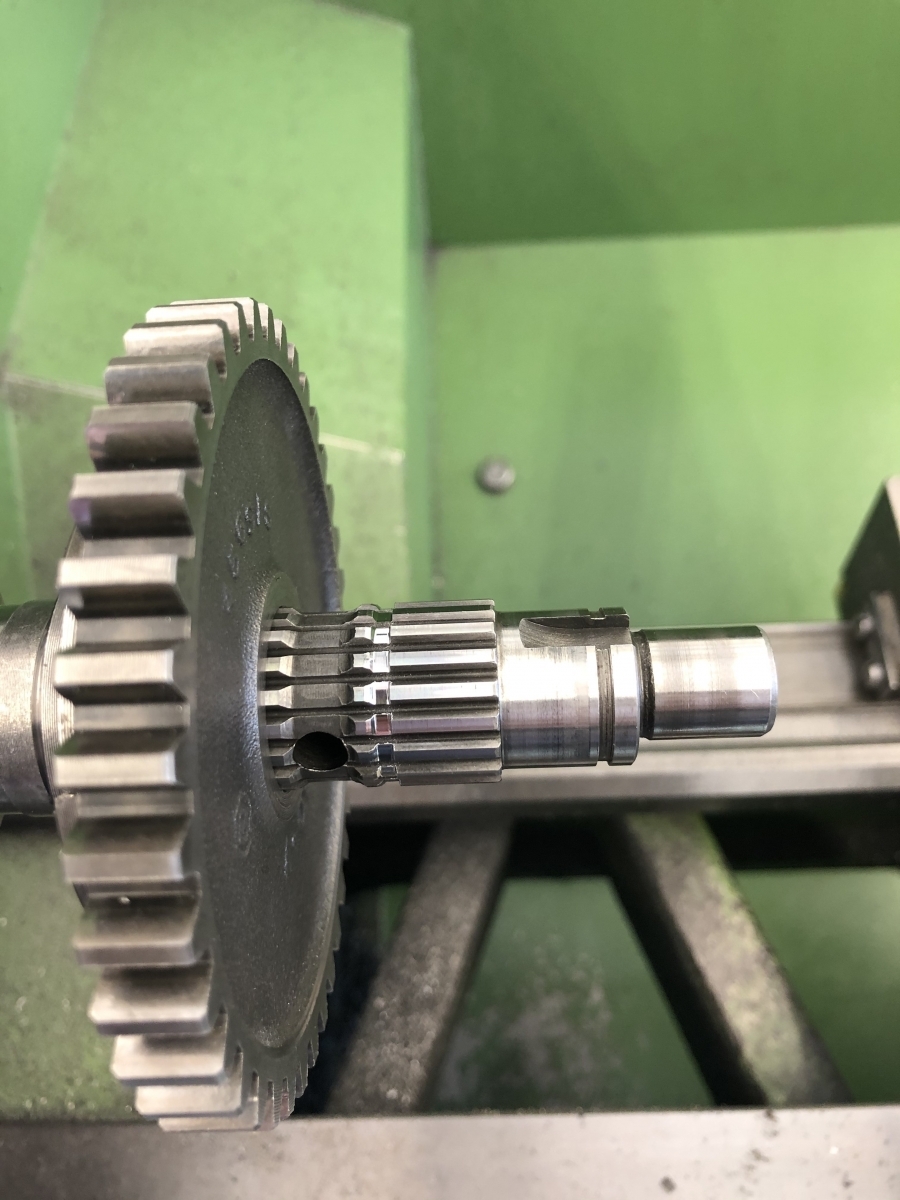 Sekundärgetriebe hake ich für mich mal geistig ab. Ich habe heute noch das Stirnrad ausgedreht und den Einstich für den Seegerring gemacht auf der Welle.