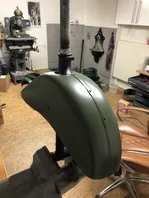 Dann habe ich mir mal das Steuerrohr genommen und geschaut, ob der Kotflügel paßt. Nicht wirklich, weiß nicht ob man es auf den Bildern sieht: