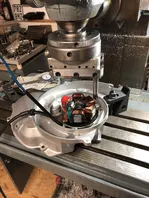 Hatte dann ja auch Bilder gefunden im GSF und dann nach dem Einpaß der ZGP den Tisch abgenommen und mit dem ganzen Zeug, daß ich mir so nach und nach gemacht hatte für die Bearbeitung des Automatik-Gehäuses was zusammengestupft, damit ich die Hälfte spannen konnte.