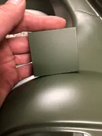 Heute sind zwei Dosen RAL 6031 gekommen, vielleicht reicht es mir morgen, zwei Farbproben zu lackieren mit oliv plus einmal matt und einmal seidenmatt zum Abgleich, ob ich damit am Seitendeckel klar komme, wenn ich den etwas robuster anfasse für die Einpaßarbeiten.