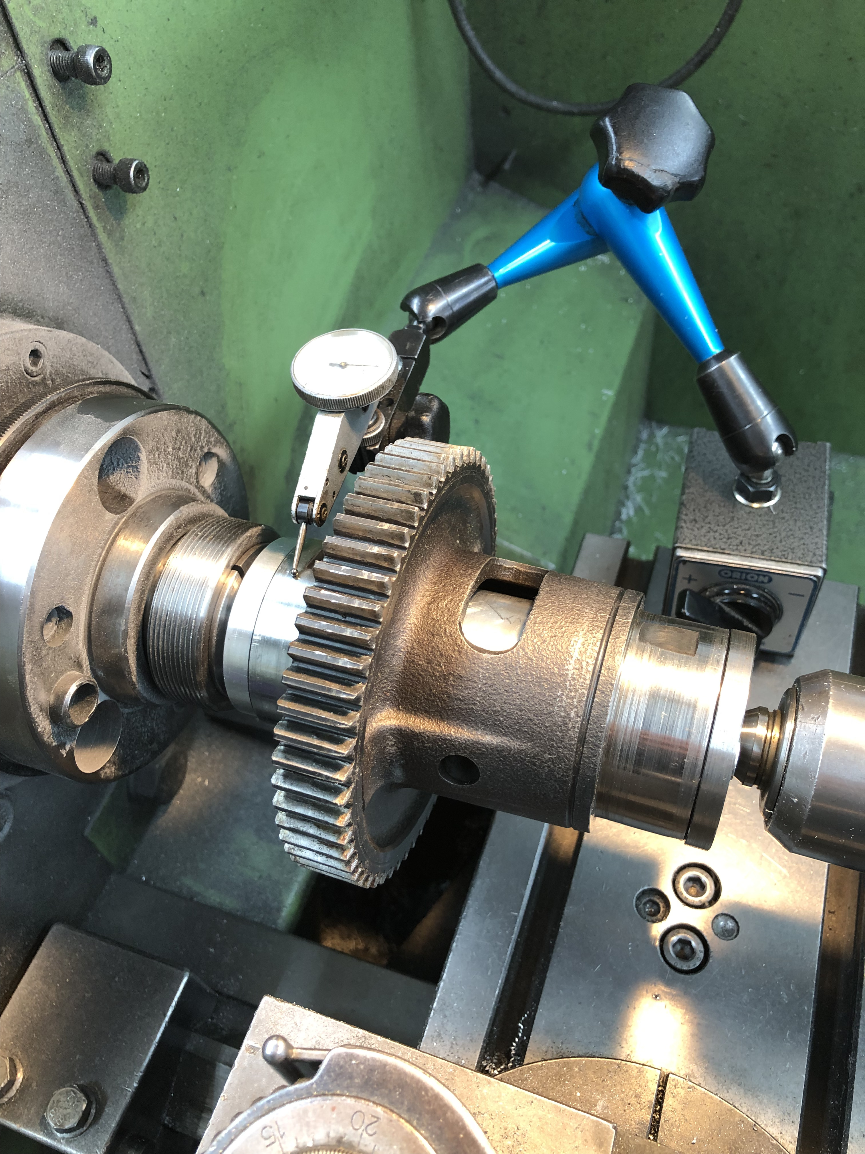 So, es ging weiter. Ich habe die Breite der Lagergasse vermessen und die Schultern des Hauptrades, es waren 0,4 mm Spiel axial.