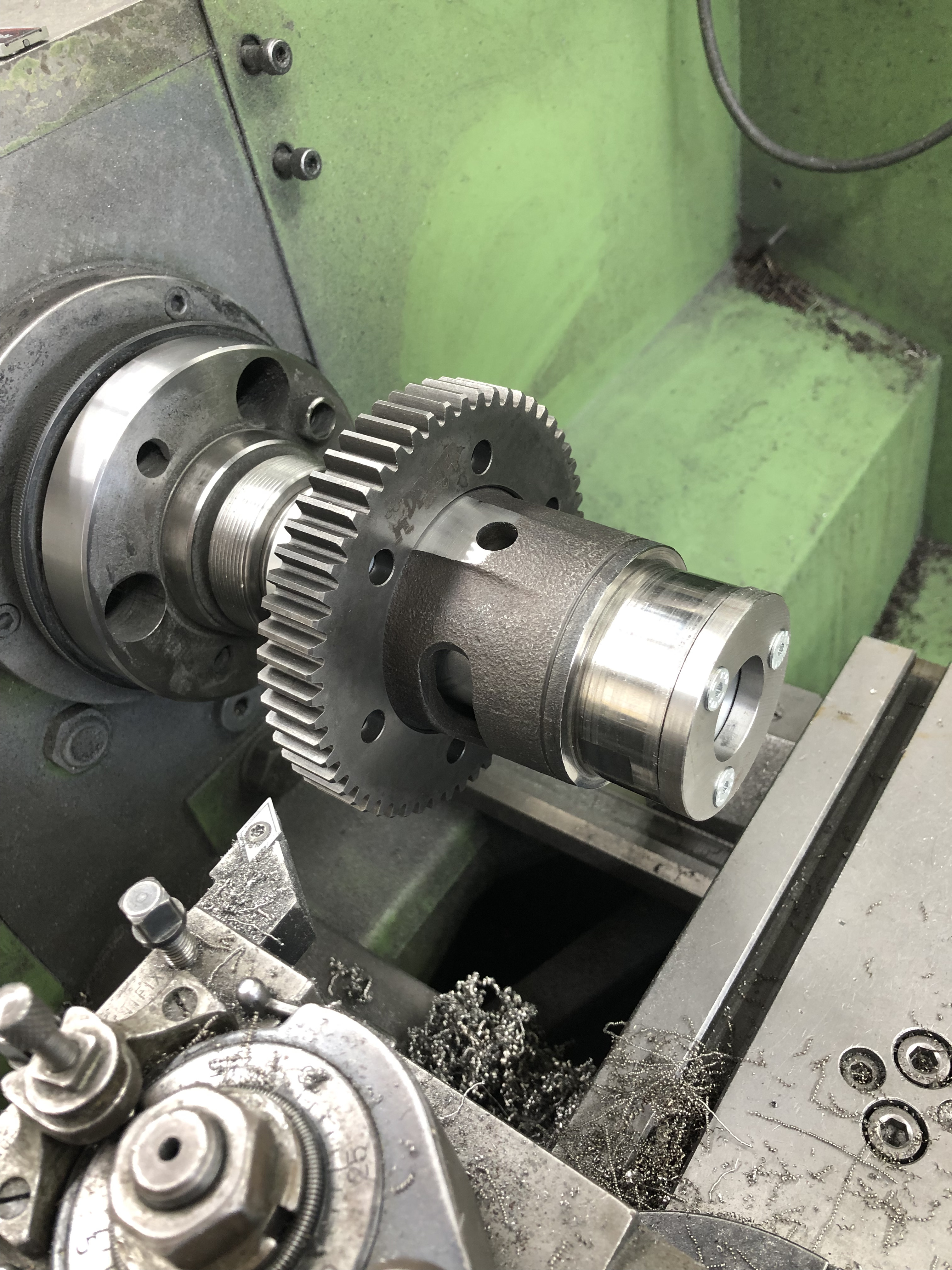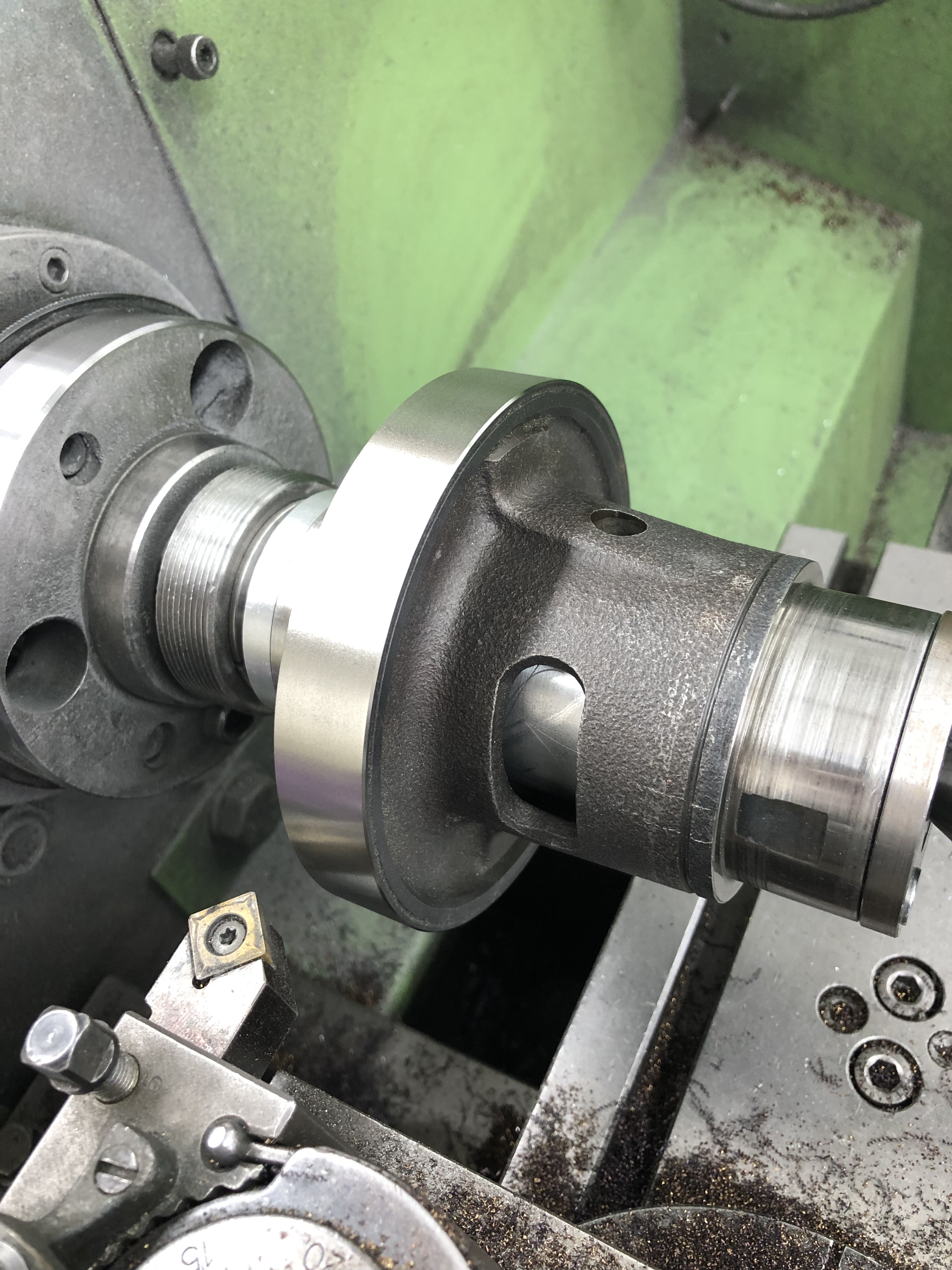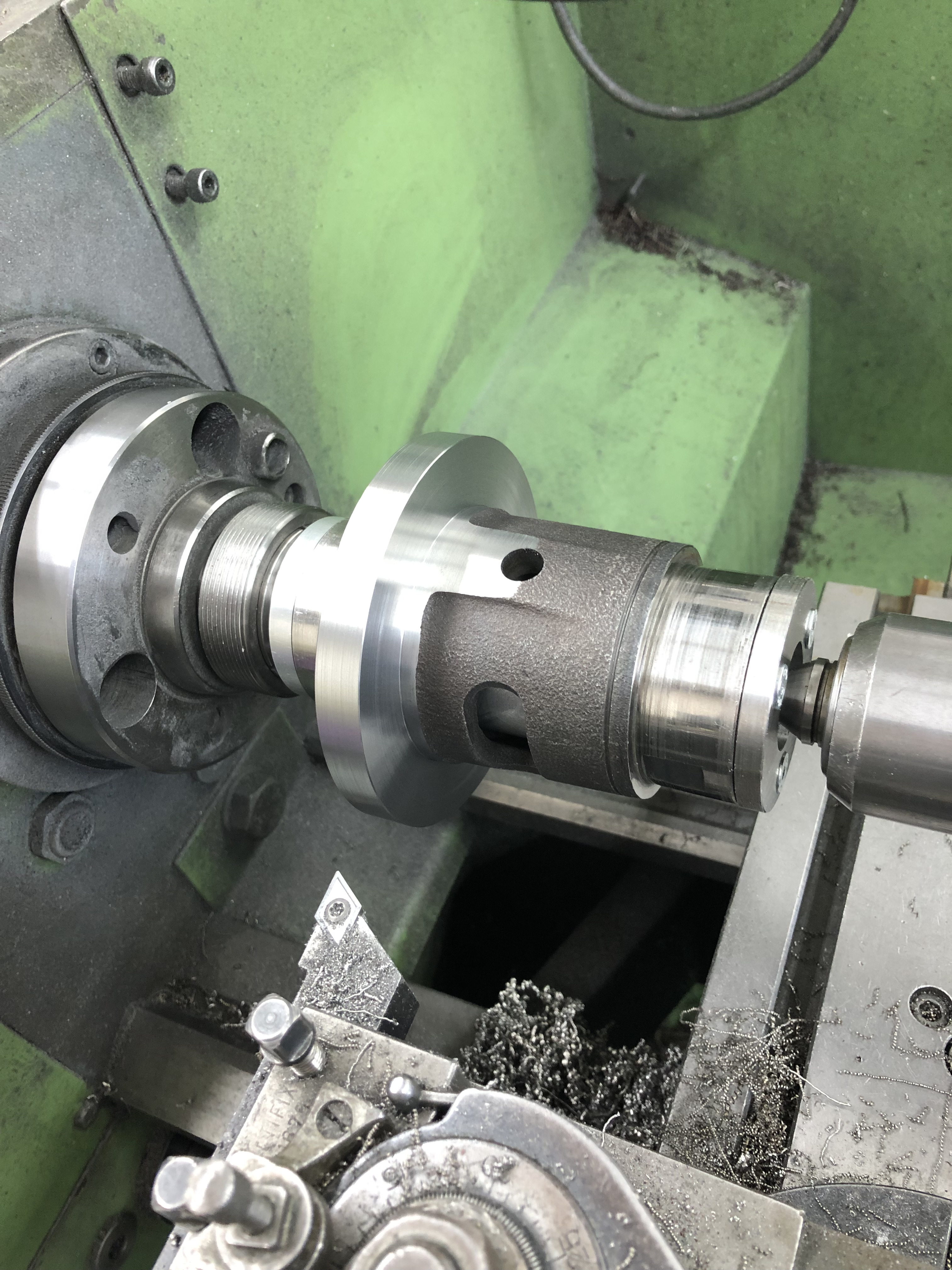 Dann auf der großen Drehbank mit dem Lager angefangen, das in die Hälfte kommt, die bisher schon eine hatte: