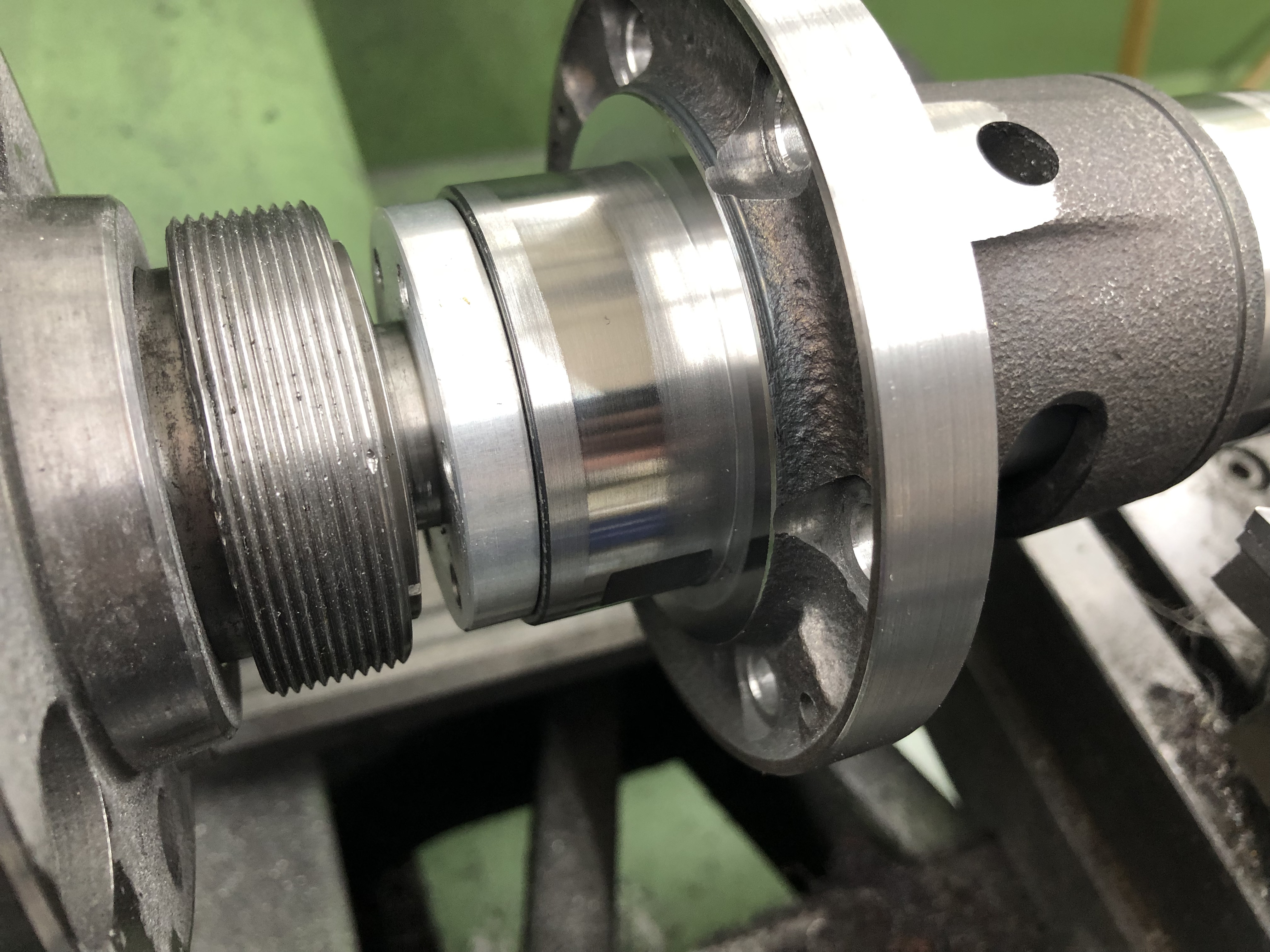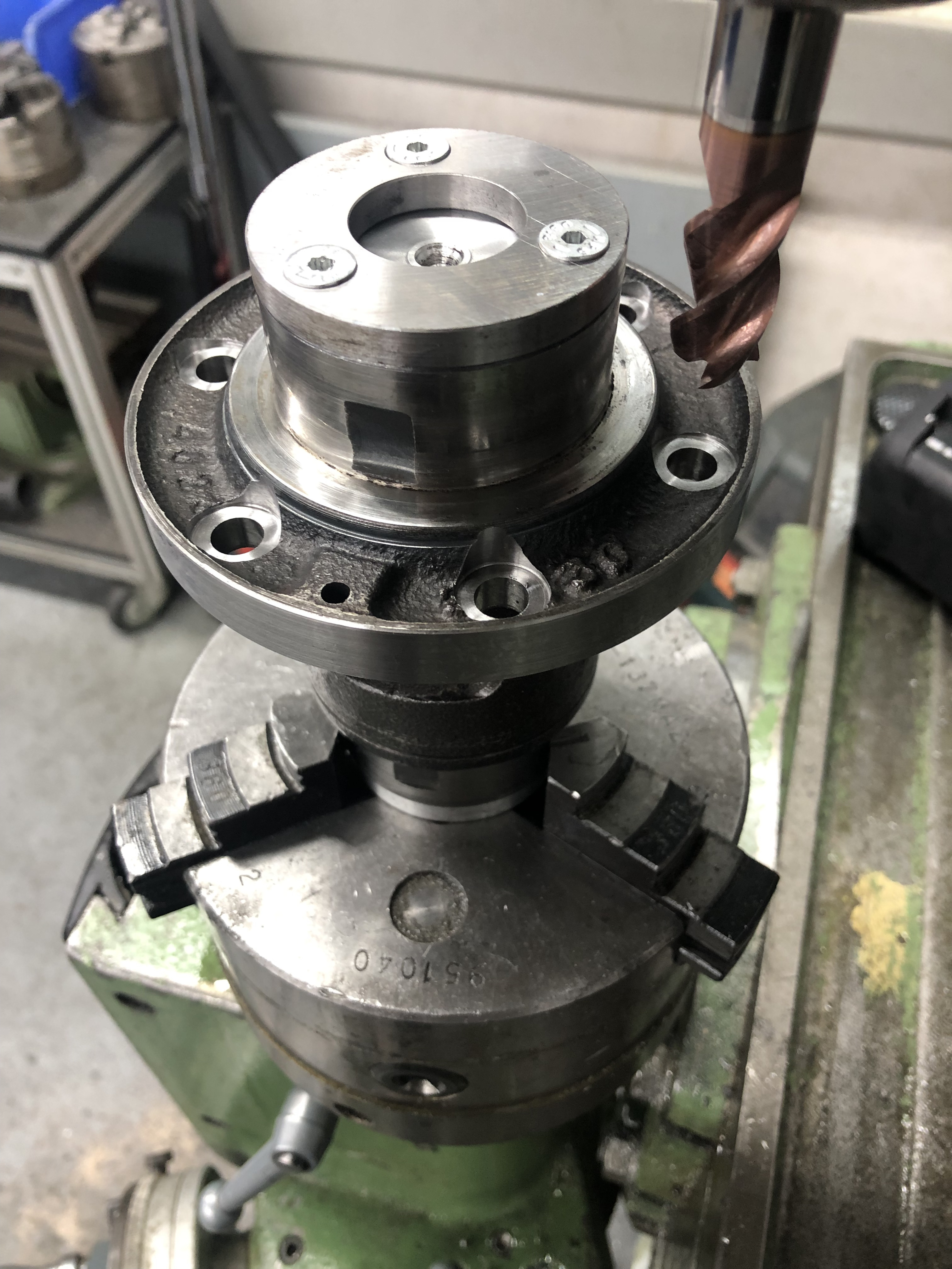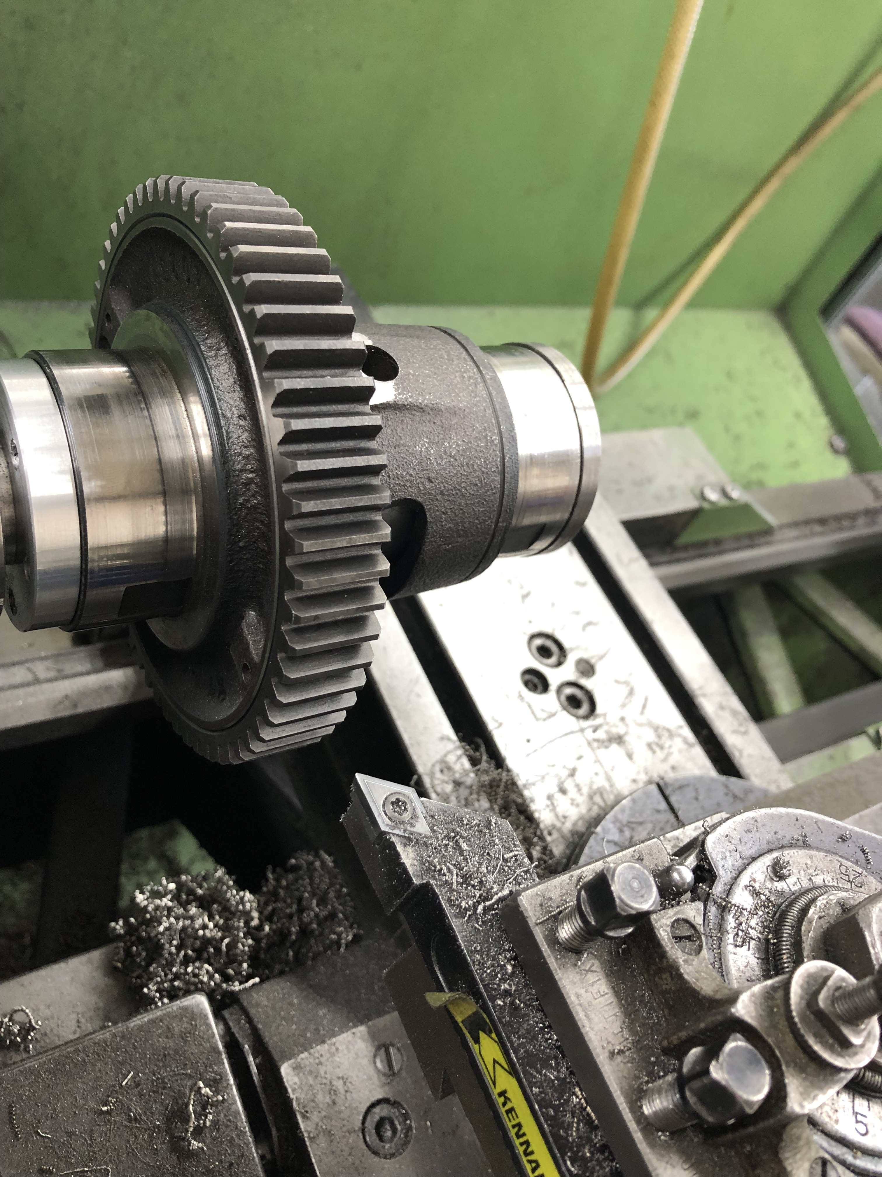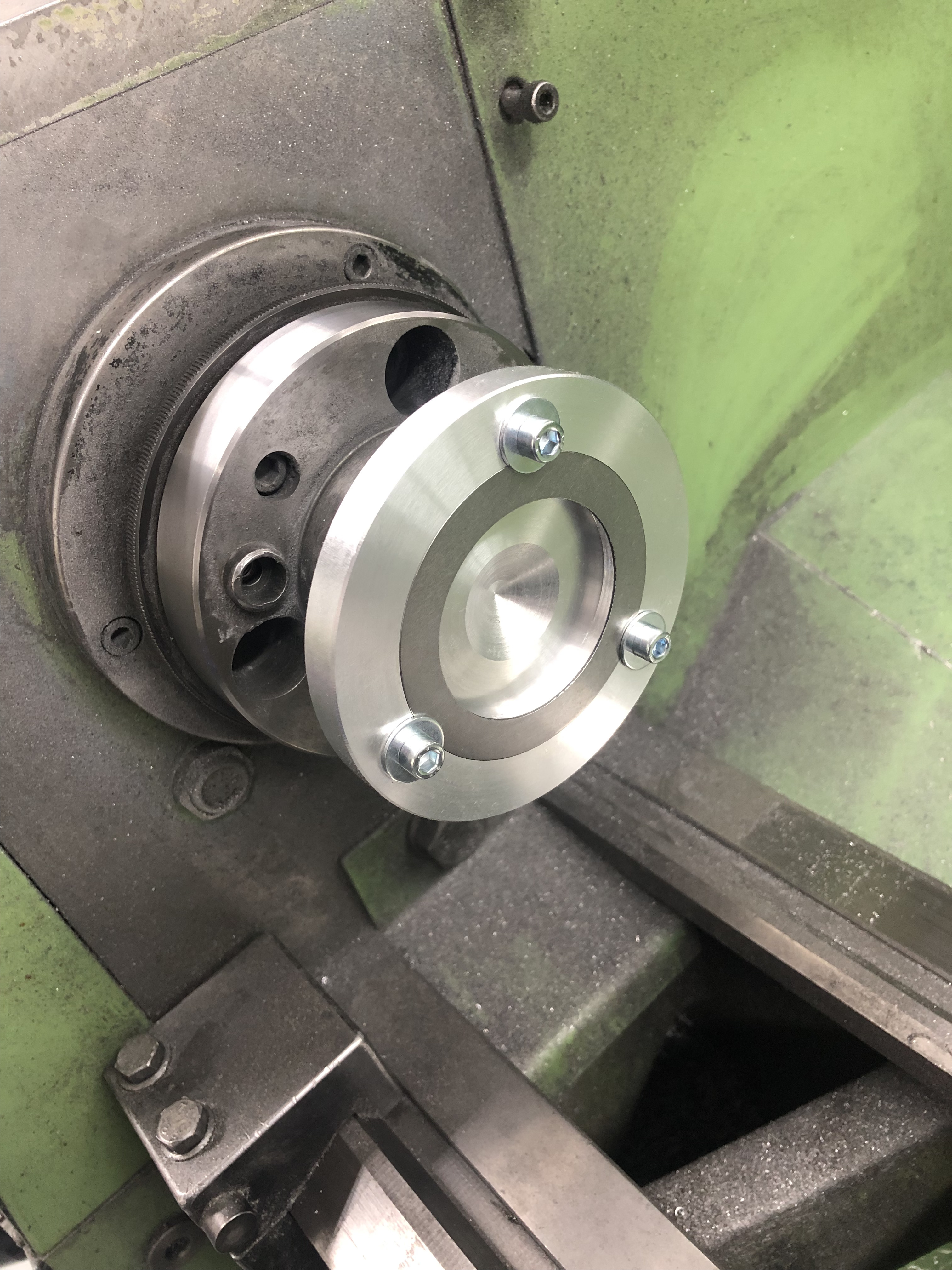 Dann auf der großen Drehbank mit dem Lager angefangen, das in die Hälfte kommt, die bisher schon eine hatte: