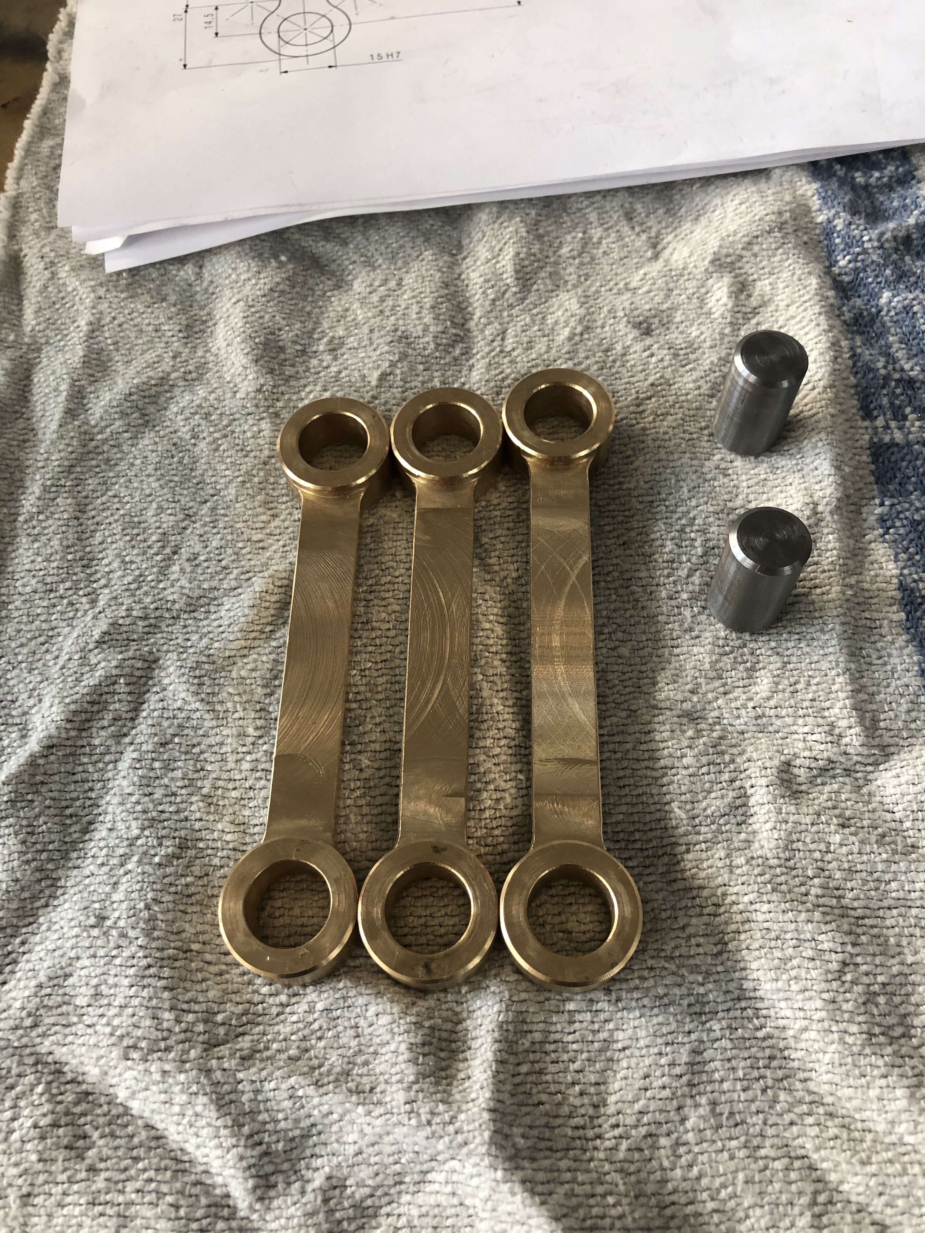 Tja, der Lehrling kämpft auf zwei konventionellen Fräsmaschinen mit den verschiedenen Pleuel-Dummys...![]()