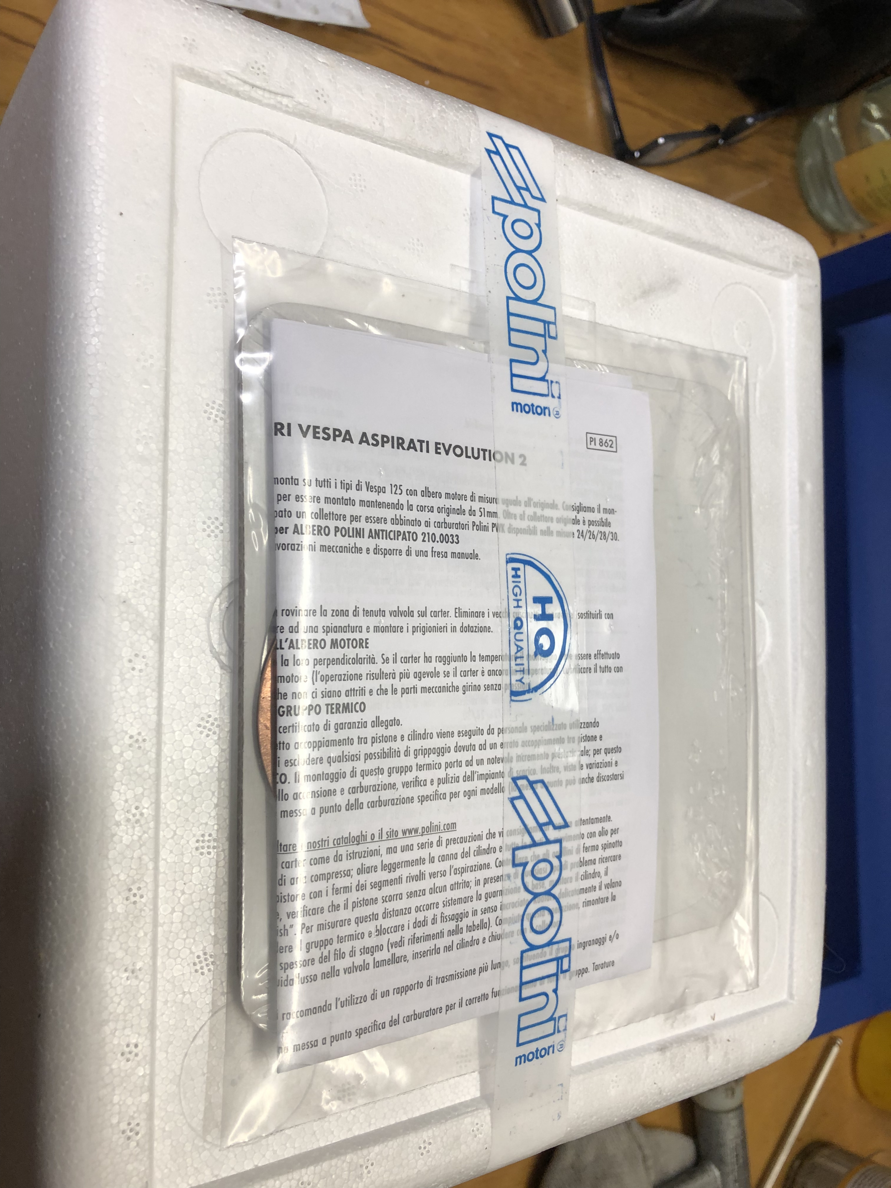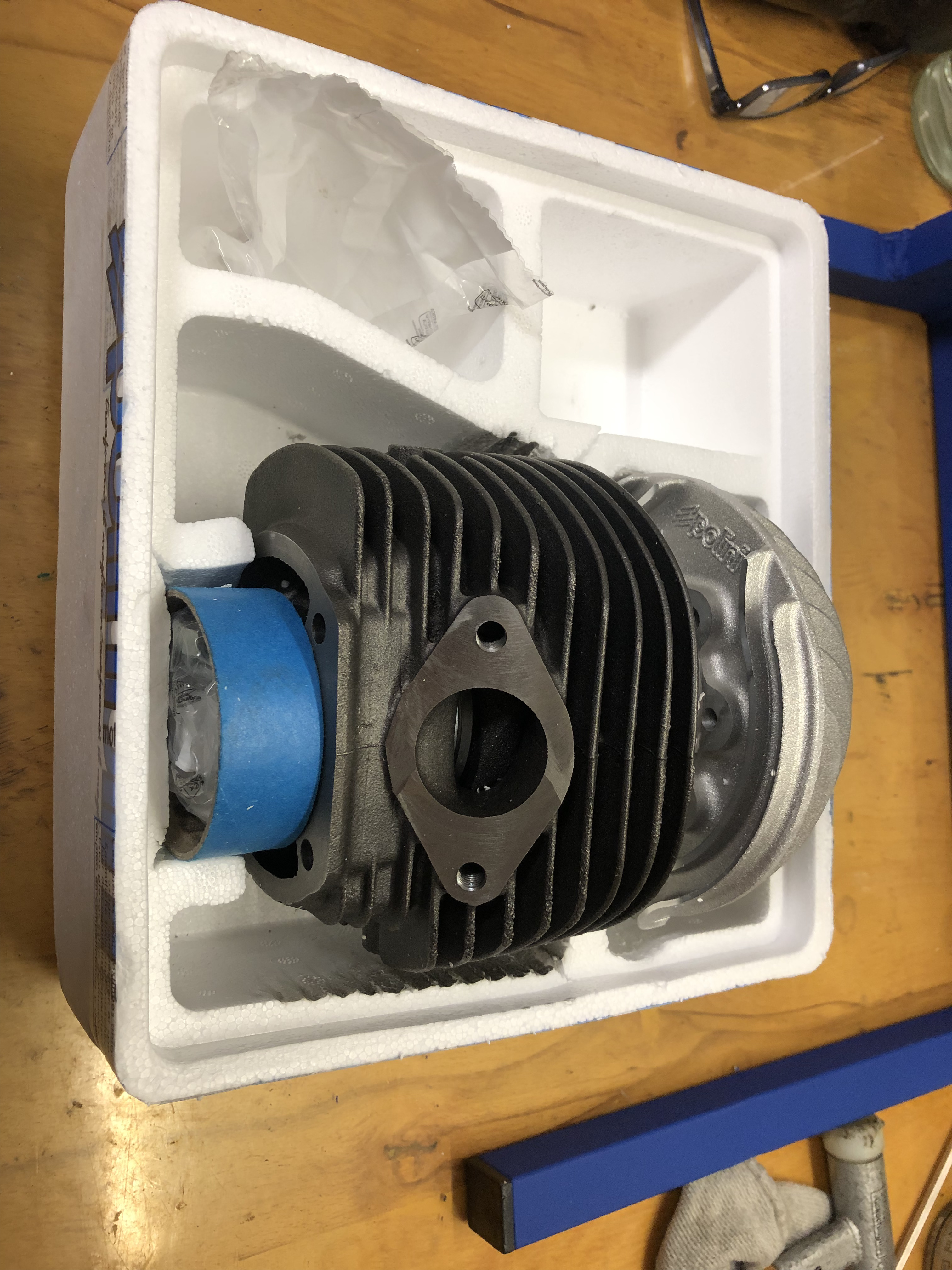 der wird es! Ich bin angetan von dem Polini mit 58er Bohrung aus Gußeisen. Zuerst mal die Verpackung. Die Transportschäden, die kurz nach dem Erscheinen des Zylinders anfang letzten Jahres wohl ein Problem waren, haben sie mit Sorgfalt gelöst: