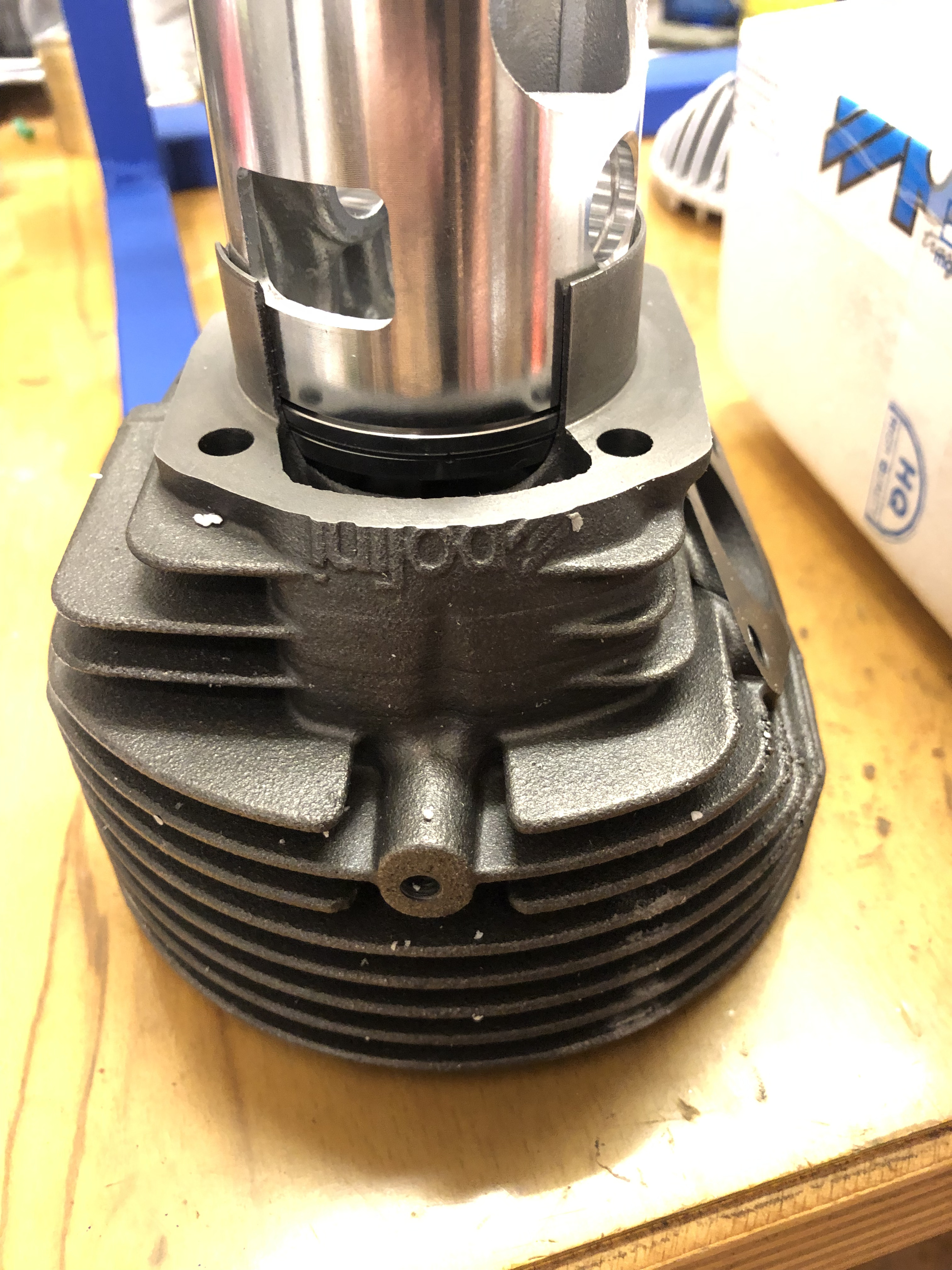 Es ist eigentlich schade, weil dieser Zylinder vom VMC vom Konzept her ja nicht schlecht ist und keinen Anschluß für ein Flatterventil hat. Gußeisen, große Bohrung und eine Pleuellänge und somit Kurbelwelle von der Stange von mehreren Anbietern.