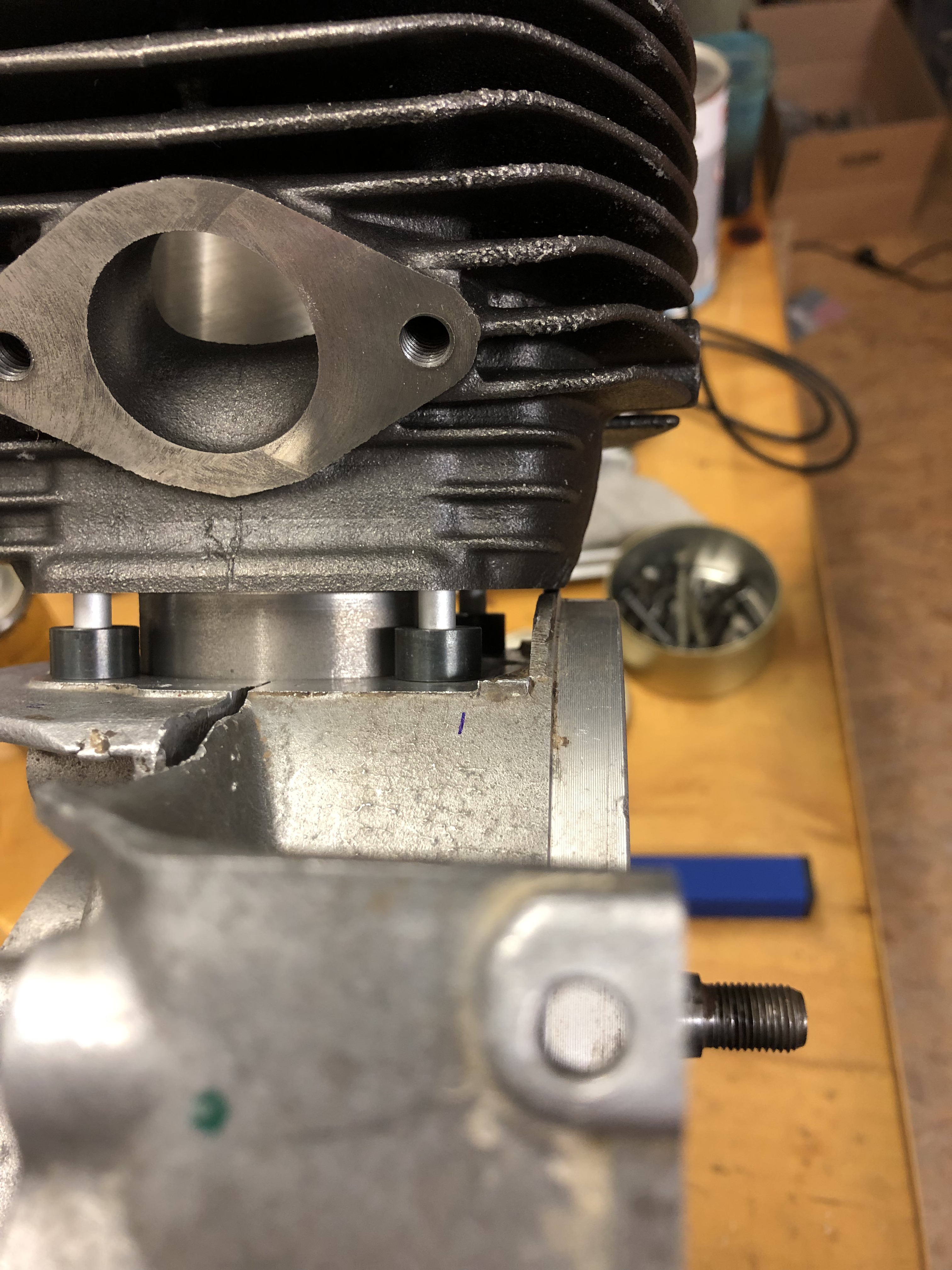 Bei den Rissen am Hemd des Zylinders des 135ers im GSF sah es tatsächlich so aus, daß die doch etwas dünnwandigen Fortsätze durch mangelnden Schutz beim Transport kaputt gegangen sind.