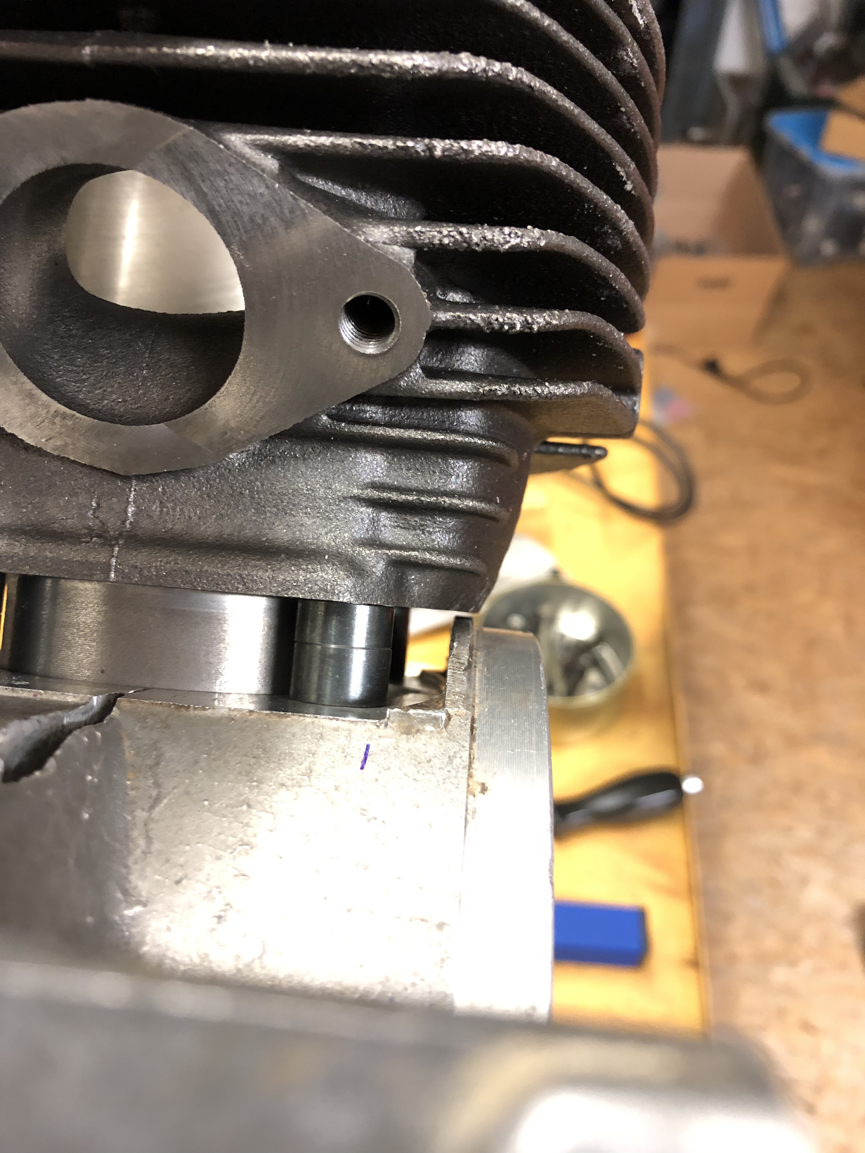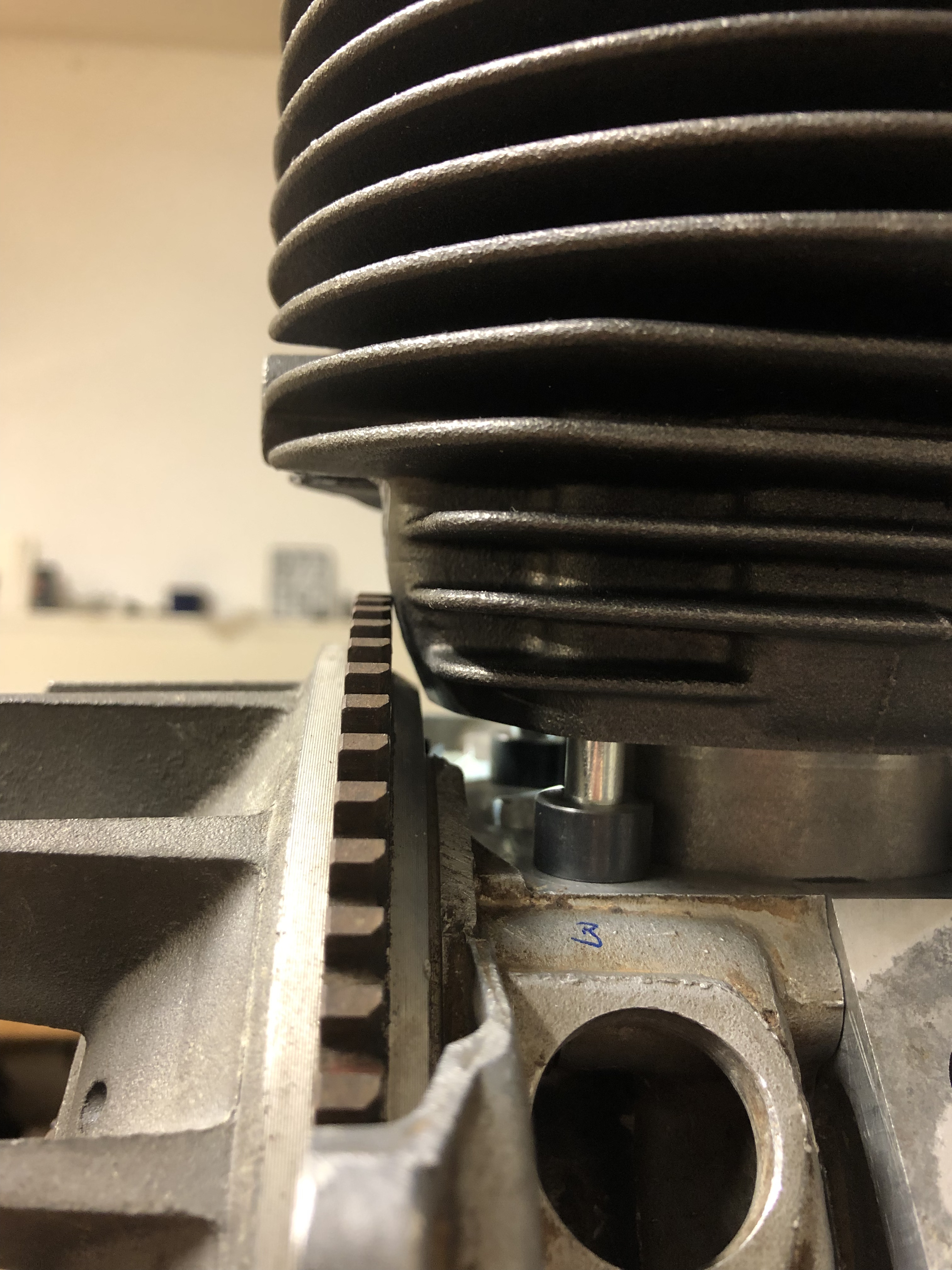 Der Zylinder kommt ja höher, vielleicht muß der obere Kranz von der Lüfterrippe ja nicht komplett weg. Wir werden sehen.