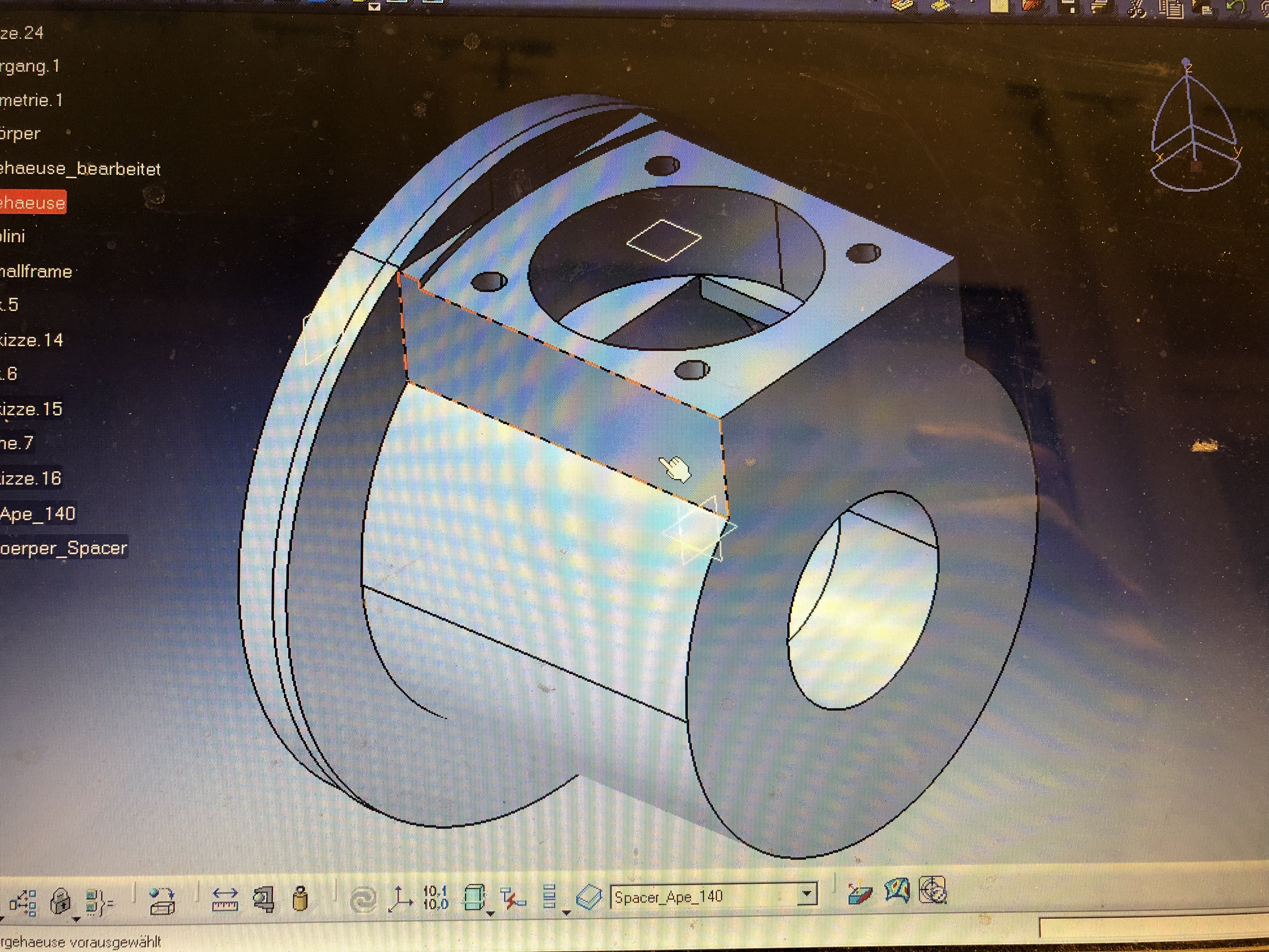 So, heute habe ich mal den alten Klappcomputer in den Stall mitgenommen und ein paar Meß-und Hilfswerkzeuge hergenommen und das Gehäuse in dem relevanten Bereich aufgemessen und ins CAD geklopft. Man kann sowas nur mit ein paar Hilfsmitteln und Meßschiebern in verschiedenen Größen erstaunlich genau vermessen, wenn man parallel dazu die Geometrie im CAD hoch zieht und die Geometrie über Hilfsmaße entstehen läßt. So habe ich auch das Lochbild um das Kurbelgehäuse erstellt. Dann kommen so Winkel raus wie 19,767 Grad oder Lochkreisdurchmesser von 114,78, dann ist die Wahrscheinlichkeit einfach groß, daß es 20° und 115 mm sind bei einer Konstruktion aus den 60er Jahren, die auf dem Reißbrett entstanden ist...![]()