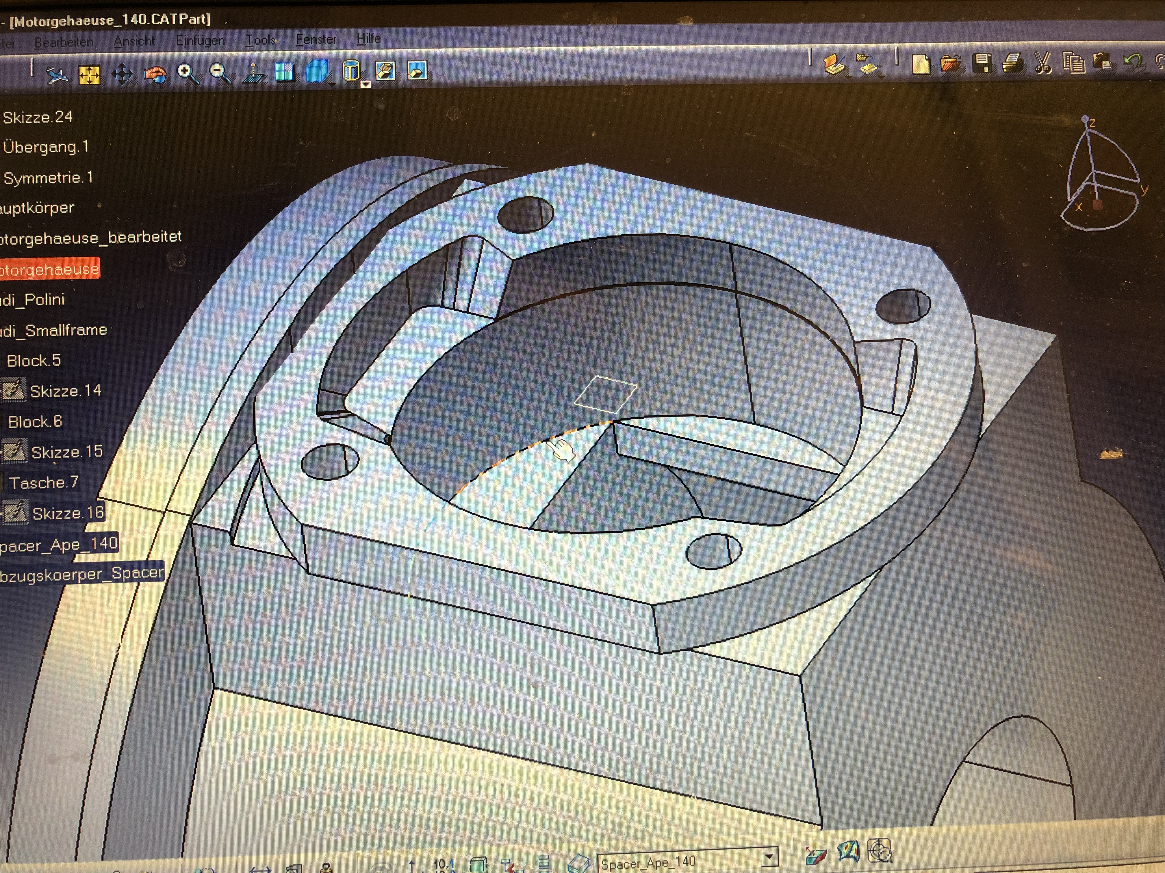 Ich kann ja die Ausnehmung mit dem 120er Radius höher machen, es bleibt ja genug Wandstärke für die Taschen. Einzig eine vernünftige Dicke unterhalb der Dichtfläche zum Polini sollte bleiben.