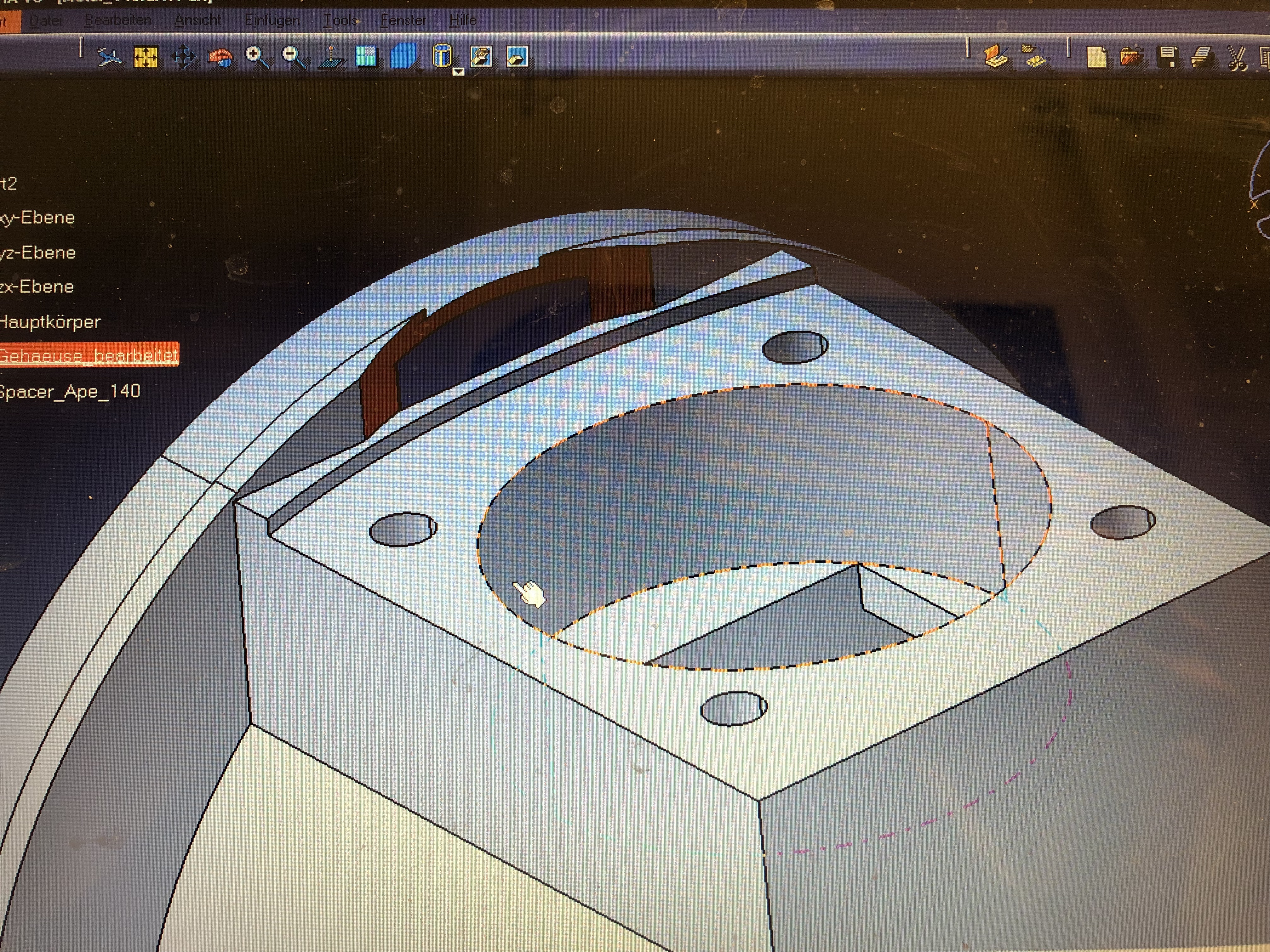 Ich werde also morgen mal, sofern es mir reicht, mal den Tisch von der Maho runtermachen und meine Spannplatte dran und das Gehäuse ausrichten und auffangen. Mit dem Ausdrehkopf kann ich dann das so bearbeiten wie im CAD und mit dem Polinispacer kontrollieren.