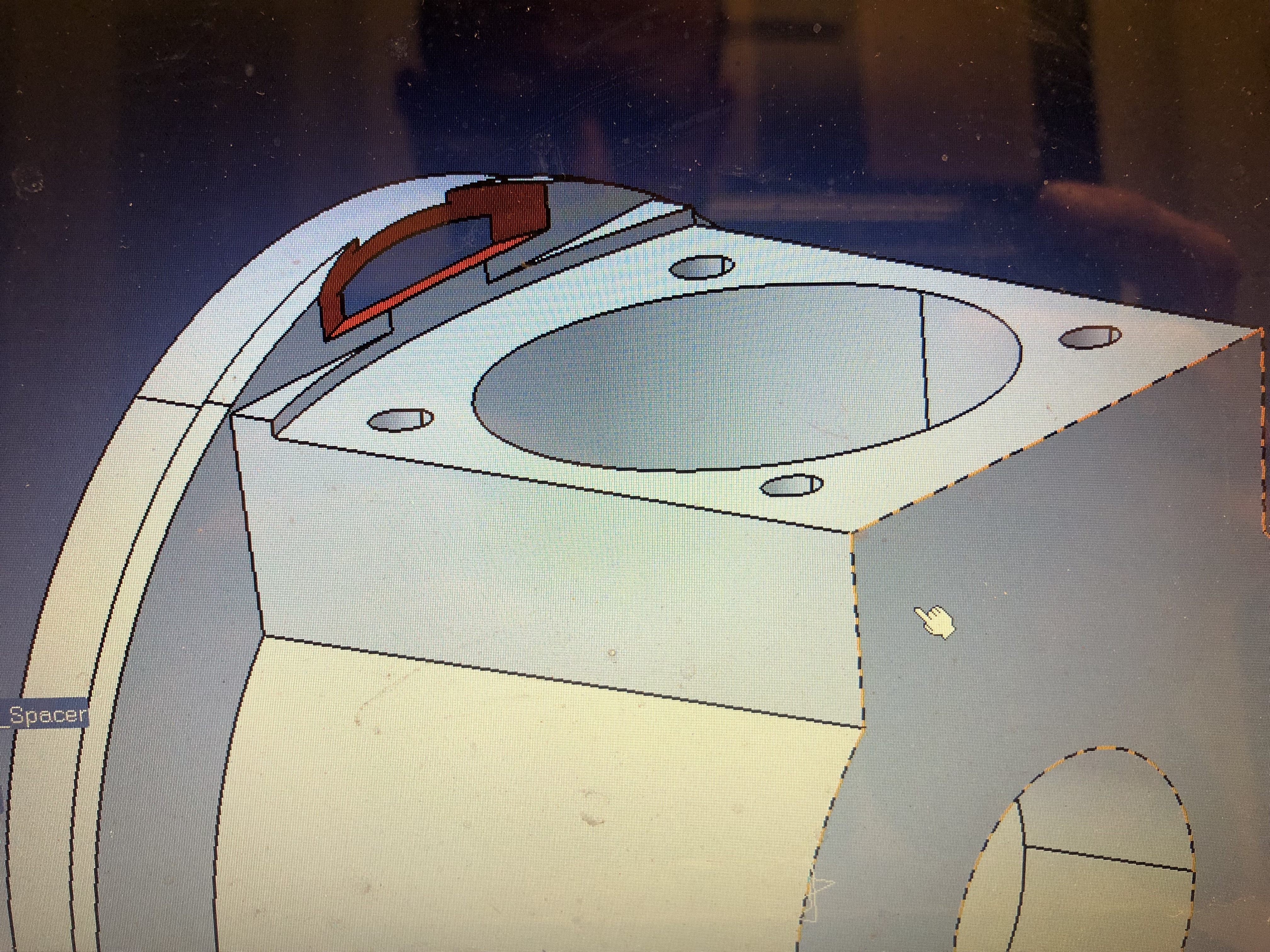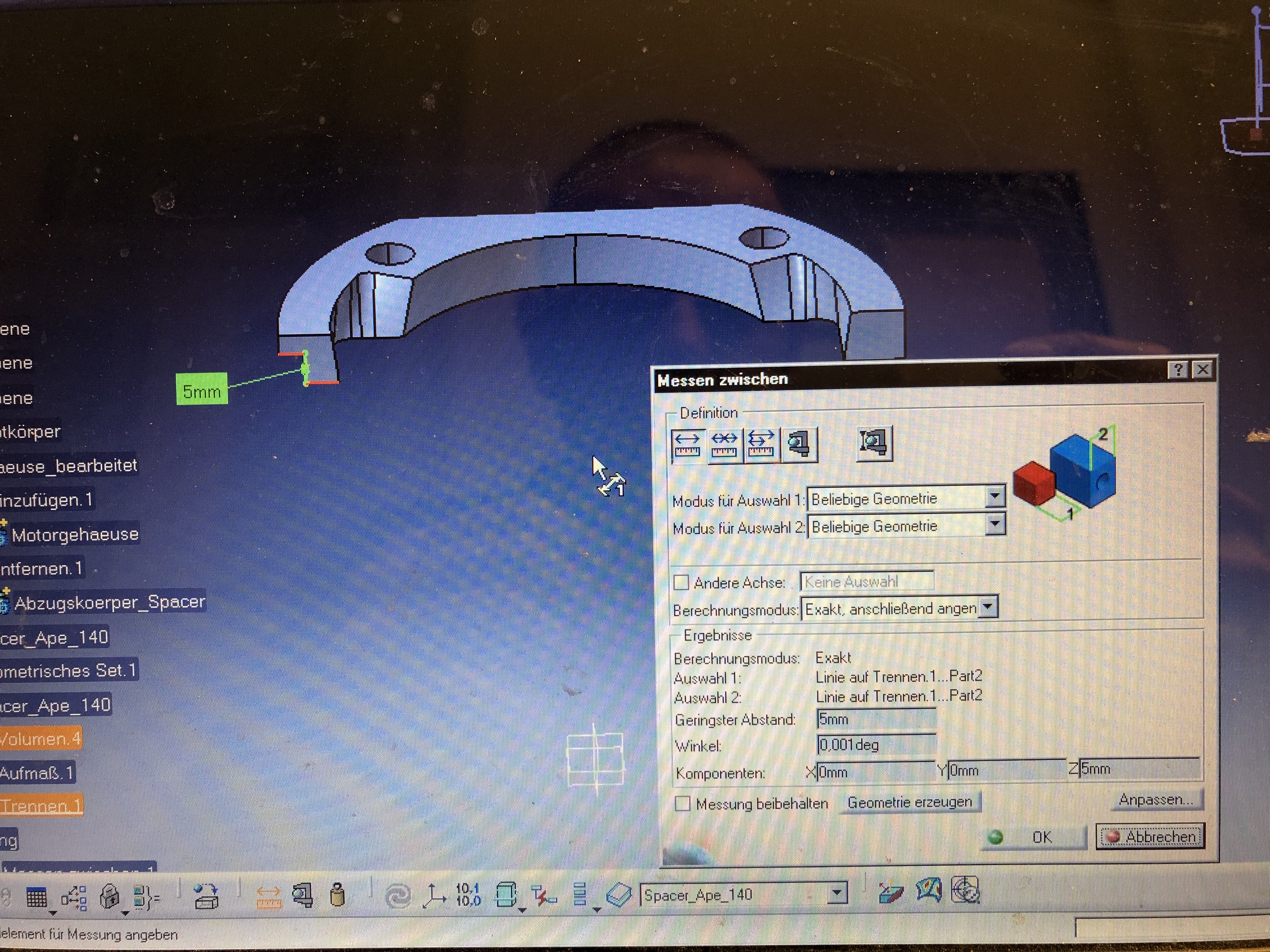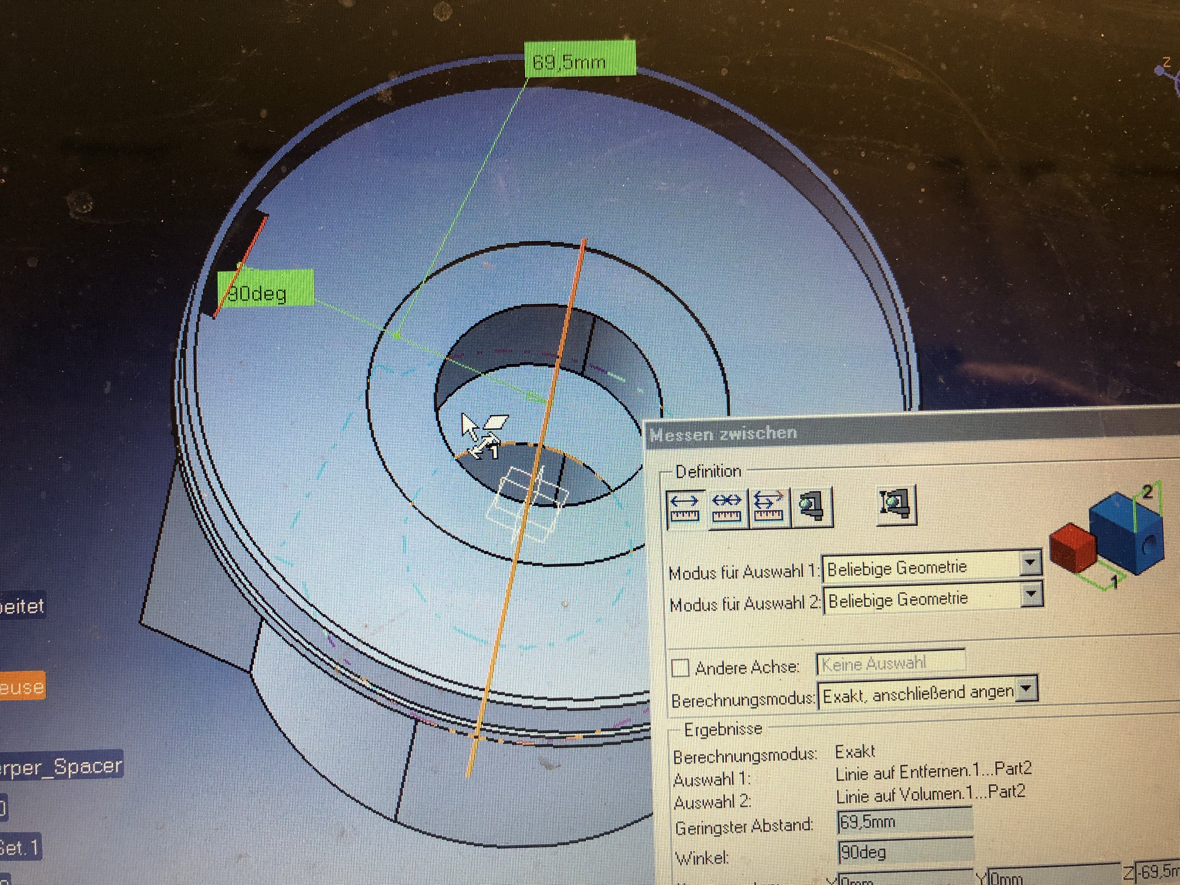 Jetzt habe ich nochmal den Käse im CAD angeschaut und einen Schnitt durch den Spacer gelegt.