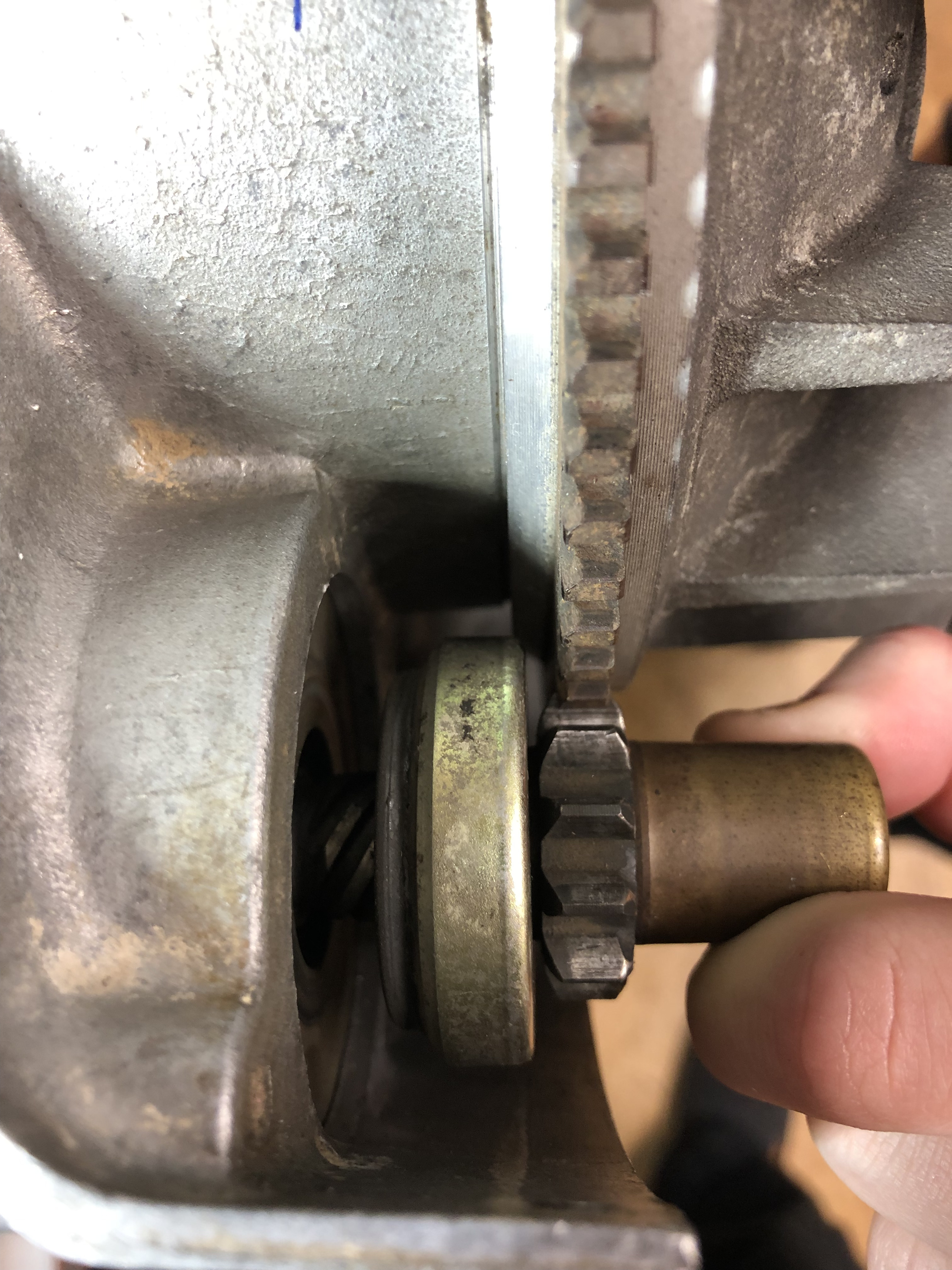Ausgerückt liegt das Anlasserritzel schön mittig: