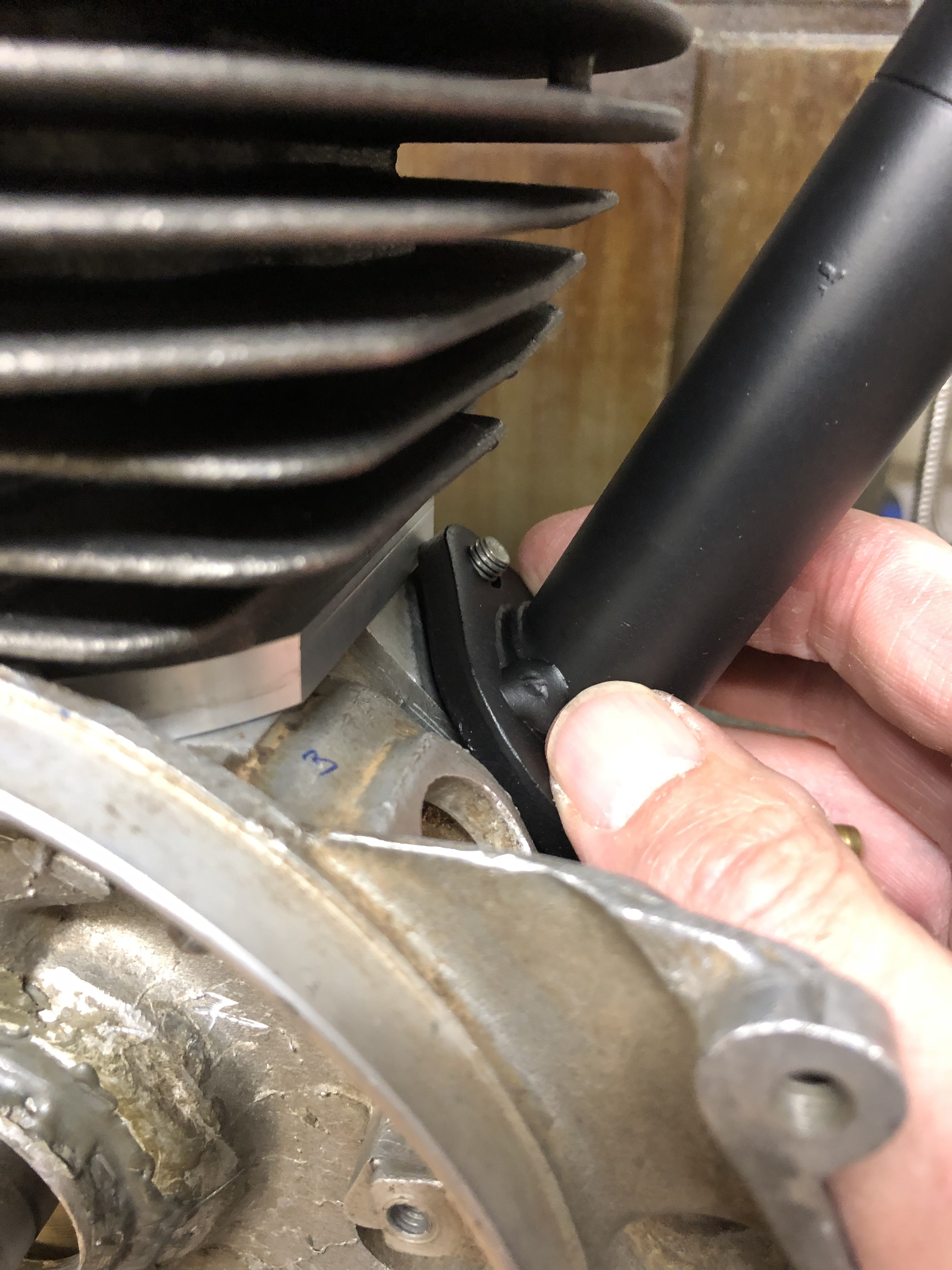 Der neue dicke Aluspacer wird knapp nicht am Polrad streifen. Ich hoffe, man sieht den schmalen Spalt zwischen dünnem Polini-Spacer und dem Polrad:
