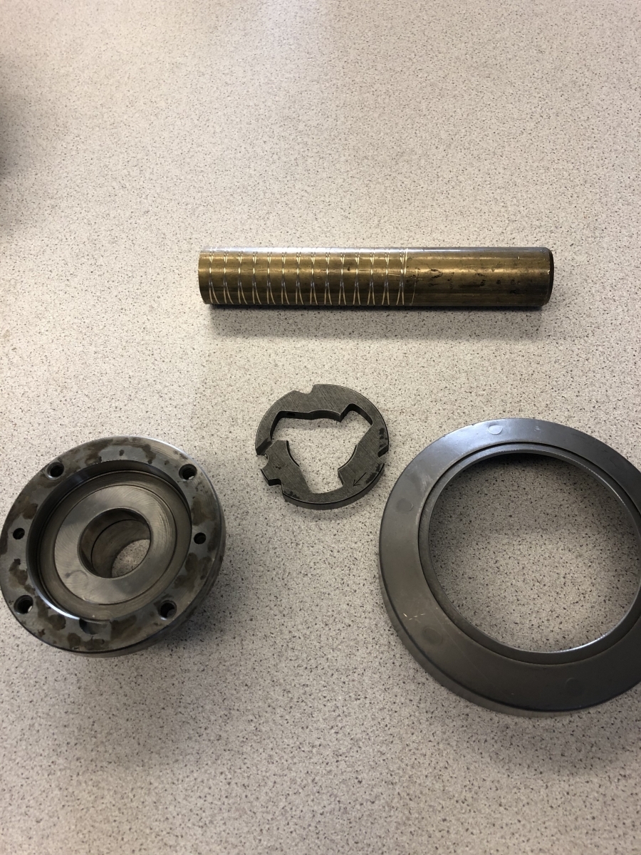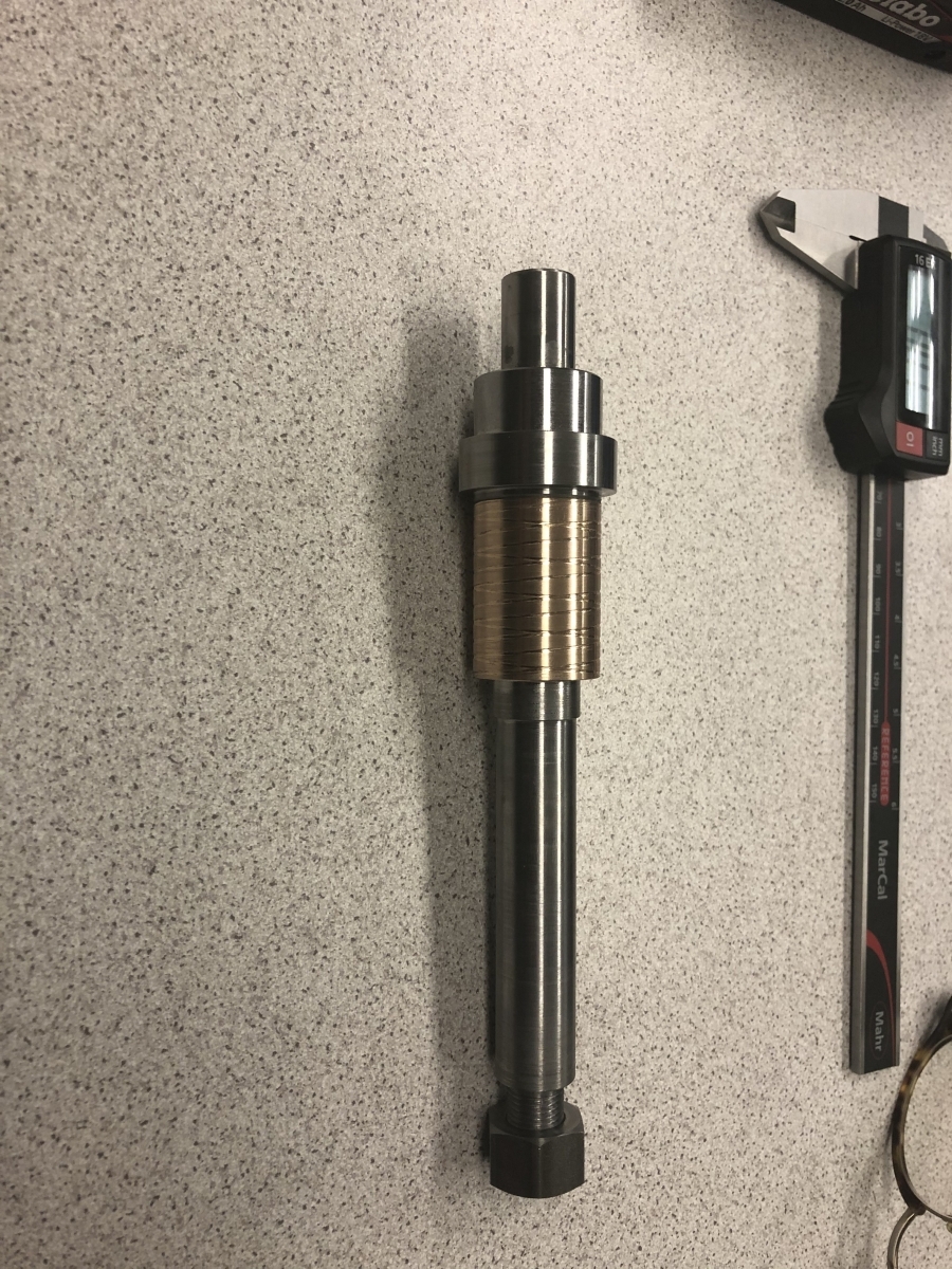 Die Wandlerwelle ist quasi fertig inklusive der Bronzebuchse. Die ist aufgeklebt und überdreht inklusive Schmiernuten.
