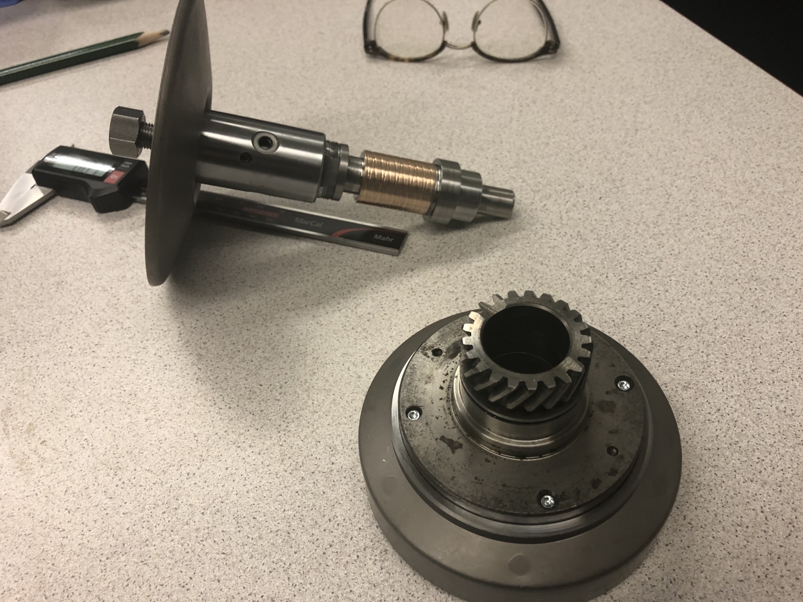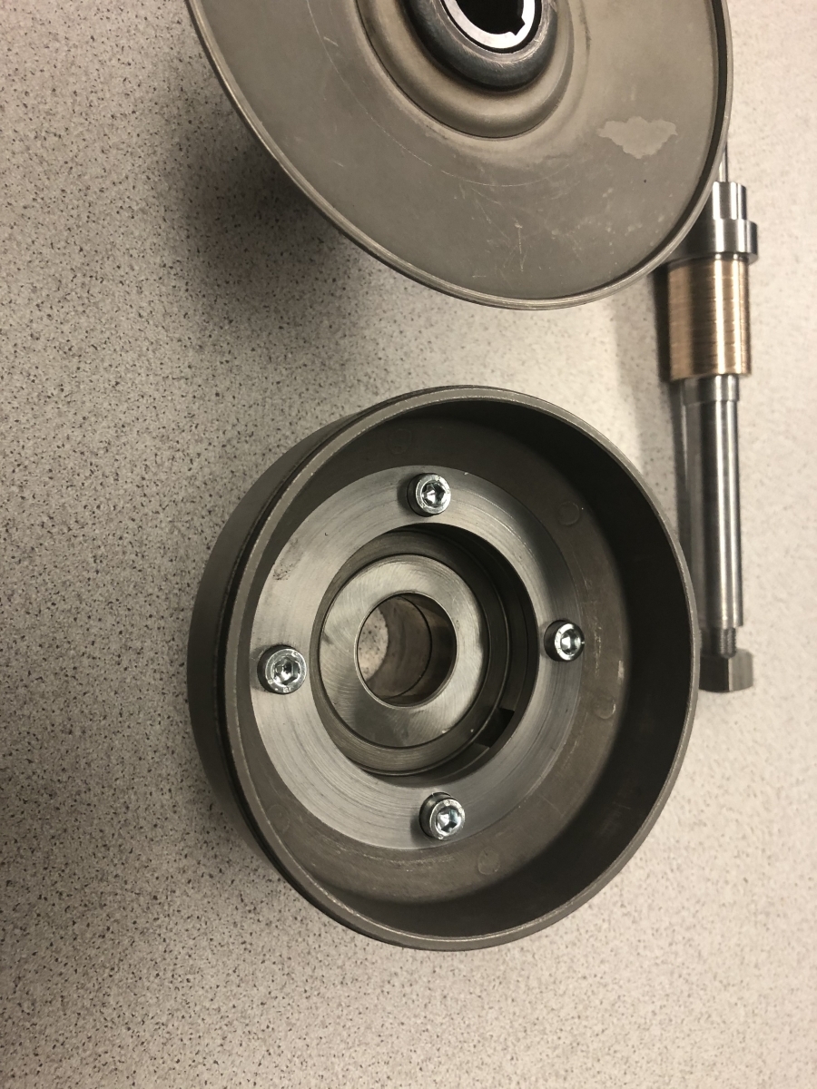 Die zweite Lagerung ist seine Bronzebuchse innerhalb des Eingangsrads, in dem es sich die Welle frei drehen kann mit der Kupplung.