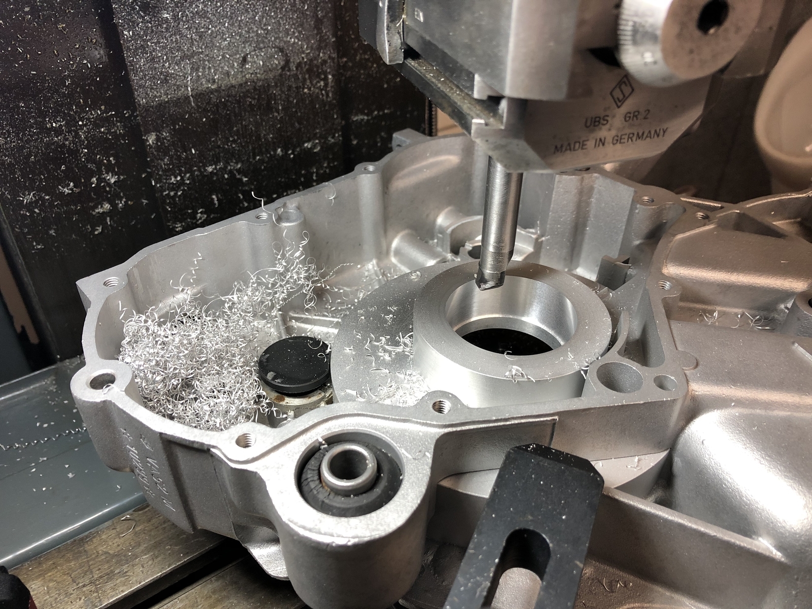 Die axiale Position der Aluglocke ist nicht wirklich ganz so frei gewürfelt, sondern ich habe die immer im Raum schwebende Option der Wiederverwendung des PK-Getriebes anstatt eines Scootergetriebes im Kopf gehabt und bei der axialen Position die maximale Tiefe der Zwischenwelle in den Getriebedeckel berücksichtigt.