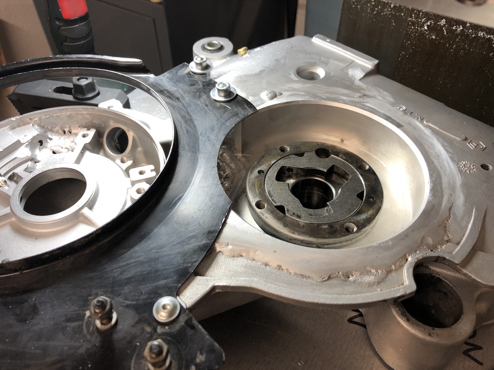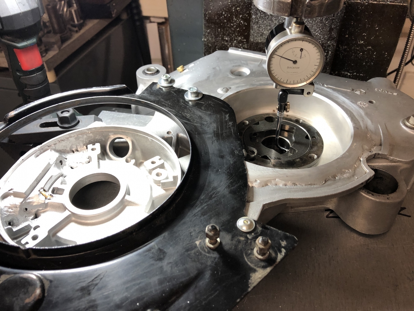 Übrigens ist diese Entscheidung für ein PK Automatikgetriebe verhältnismäßig spät gefallen, die Aluglocke in ihrer Größe, Position und auch der 70 mm Ansatz innerhalb des Gehäuses, den ich letztlich weggespindelt habe, waren alles Geometrien, die bis zuletzt beide Möglichkeiten offen gelassen haben.