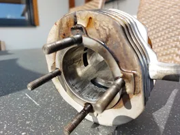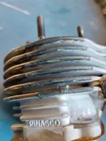 Es war eine Fahrt 5 km im Moseltal, dann 3 km m. 10 % Steigung im 2. Gang ( 3 Gang Vespa) wegen der langen Übersetzung zum 3. Gang. Aber nur dreiviertel Drehzahl ausgenutzt. Sie will mehr ich quäle sie aber nicht. Oben auf der Höhe dann 3. Gang m. Ca 65 km 2 km gefahren bis Leistungsverlust einsetzte. Die Gänge noch runtergeschaltet dann war sie aus. Im Feldweg abgestellt und Fehlersuche gemacht. Erneutes ankicken fehlgeschlagen, da Kickstarter fest war. Im Leerlauf auch. Also war der Kolben fest.