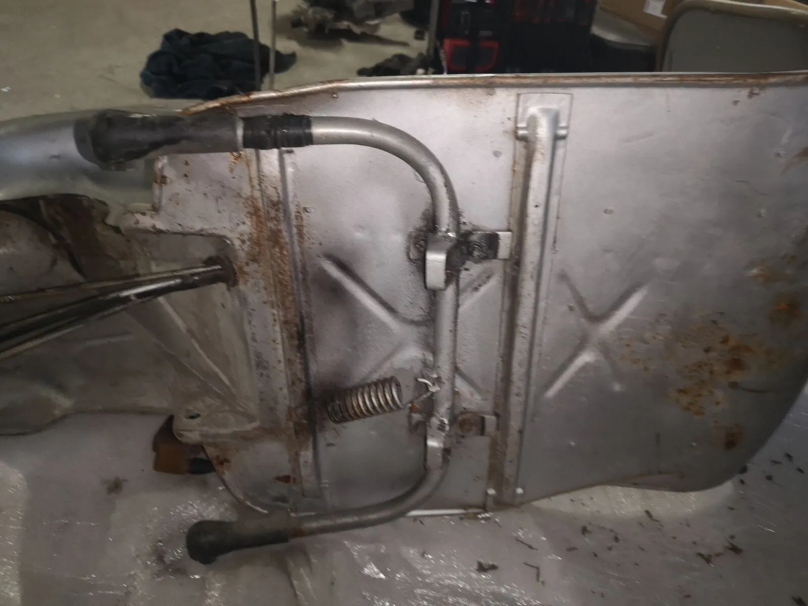 Der Rahmen wird wohl Glasperlgestrahlt und anschliessend neu lackiert. Im Moment schwebt mir die Originalfarbe verde pastello 399 vor.