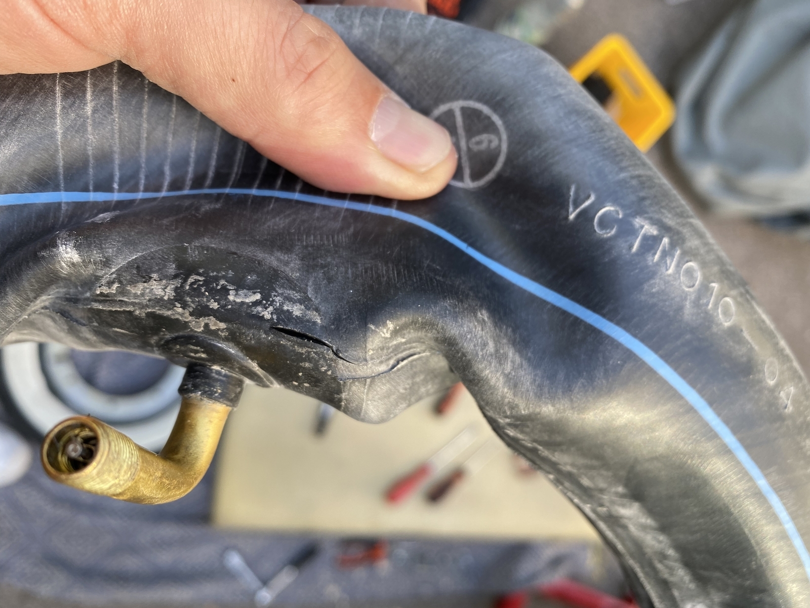 Ich tippe auf ein Materialfehler. Wahrscheinlich ist der Schlauch schon bei der hohen Geschwindigkeit gerissen und dadurch ist die Wärme entstanden, weil der Reifen keinen richtigen Druck mehr hatte. Ist aber nur eine Vermutung.