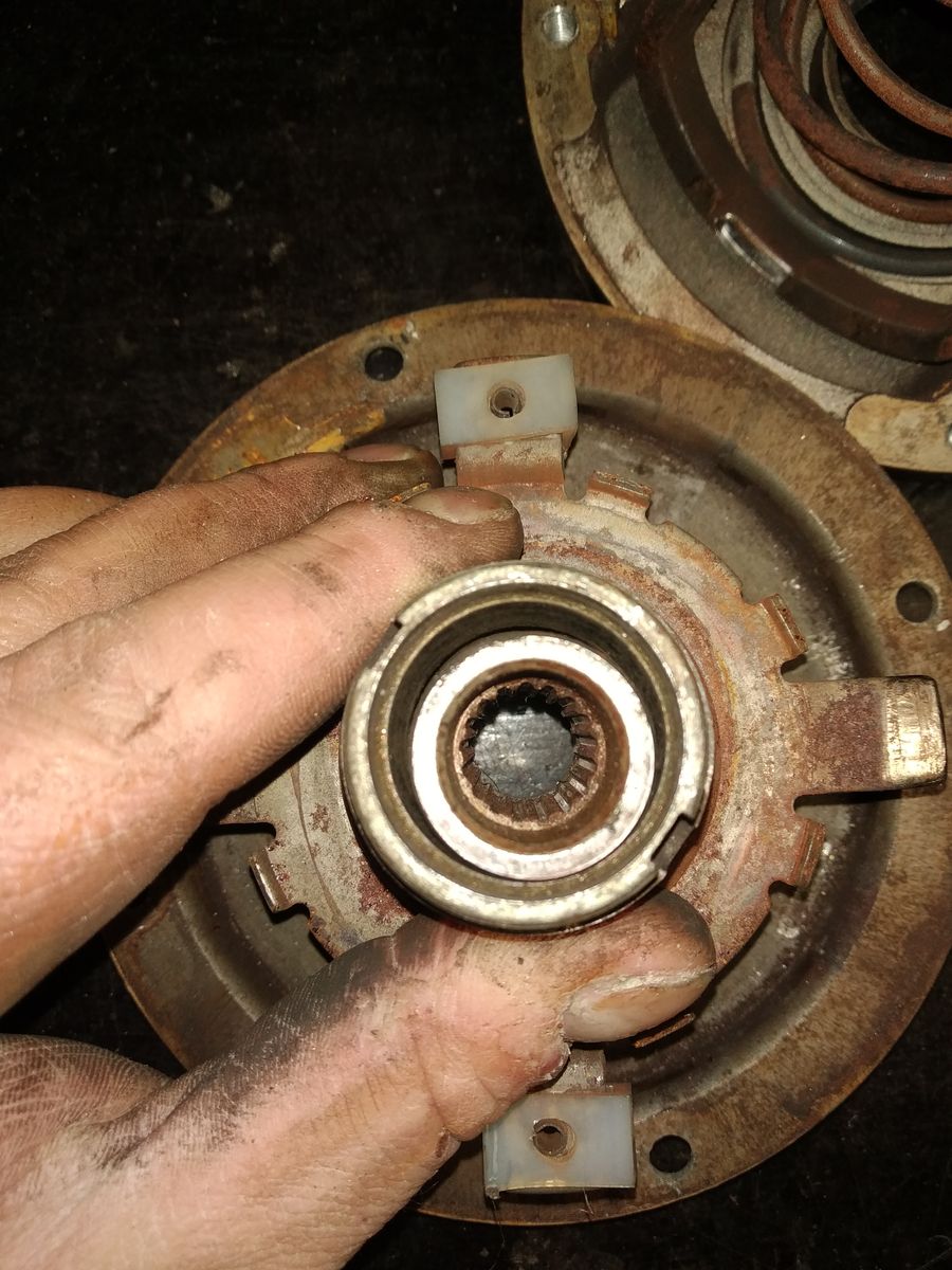 Ich habs jetzt ausgedreht, und es war sicher kein Messing oder Rotguss. Ich denke das die Simmeringe für das wandlerfett waren, auch die sind nicht zu bekommen. Ich presse mir jetzt eine durchgehende Rotgussbuchse ohne Simmerringe ein. Das sollte selbstschmuerend genug sein. Mal sehen ob es lange hält.