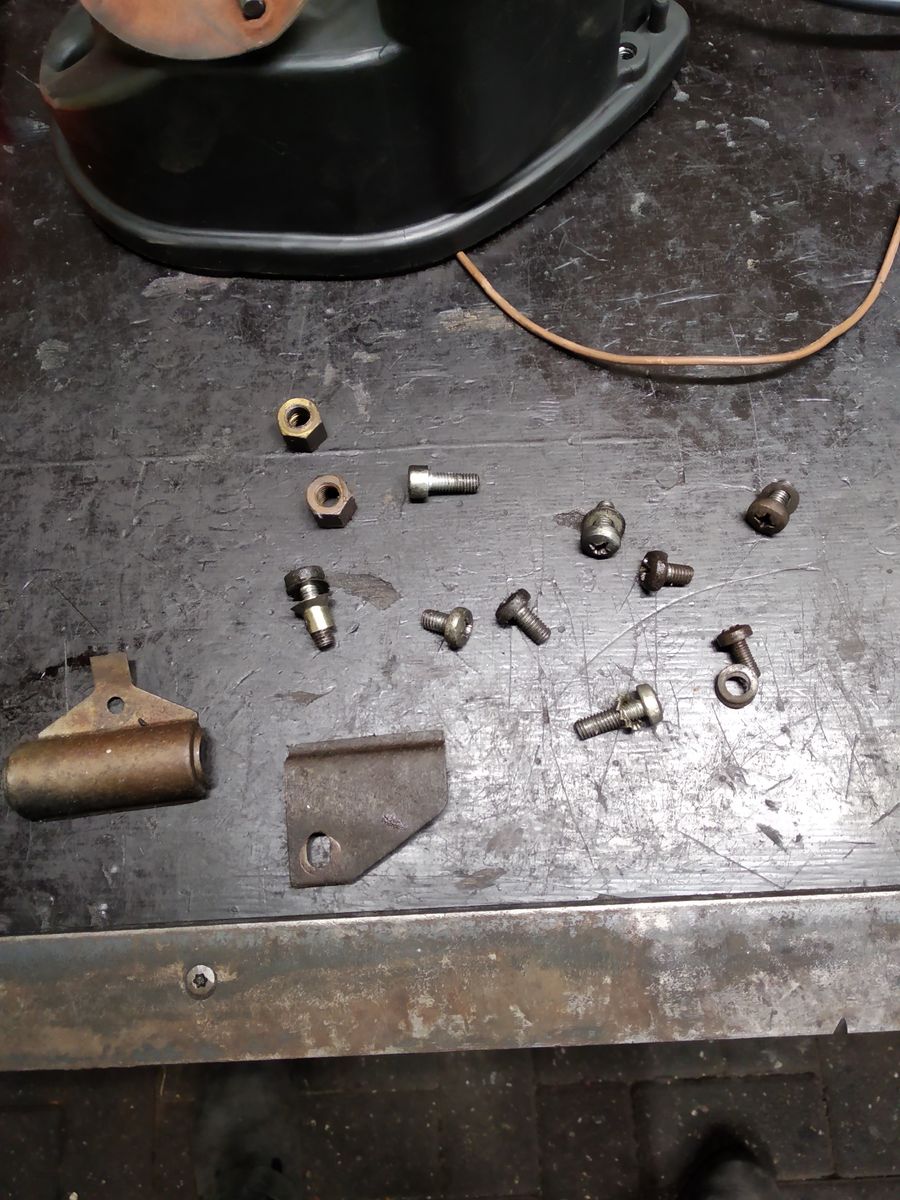 Es geht weiter, das Gestänge samt Gehäuse habe ich gefunden und konnte ich zuordnen. Auf den Bildern sieht man das Blech was am Motor angeschraubt wird, liege ich da richtig das ich dafür kurzen Kreuzschlitzschrauben benötige?