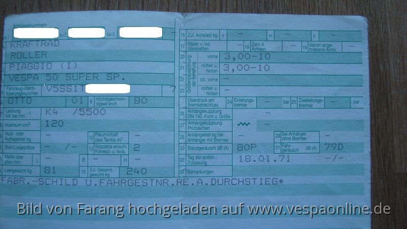 Meine 50ss hat auch einen 125er Primavera Motor mit eingetragen 80 Km/H