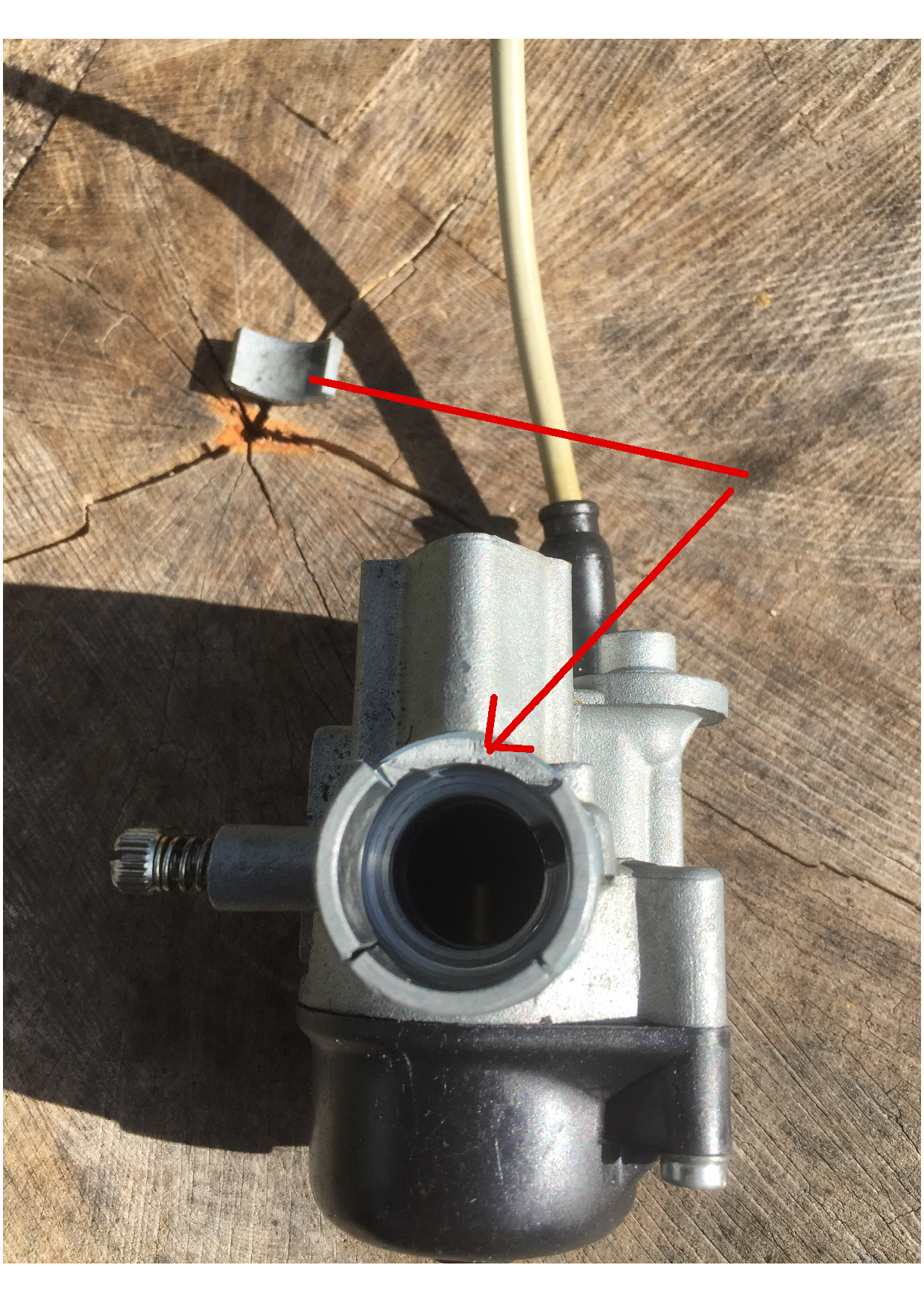 Bild 1 alles wieder zusammengesteckt, beim völlgen Zusammenstecken hört man wie der Ansaugstutzen im Inneren des Vergasers an das Ende der Ausdrehung stößt.Normal?