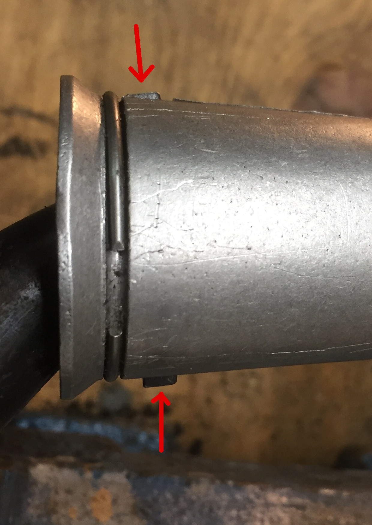 Bild 3 und Bild 4 auf der eine Seite liegt die eine Nase nicht an der Einschlitzung der Hülse an, wogegen auf der anderen Seite sich die Nase scheinbar in den Schlitz eingearbeitet hat.