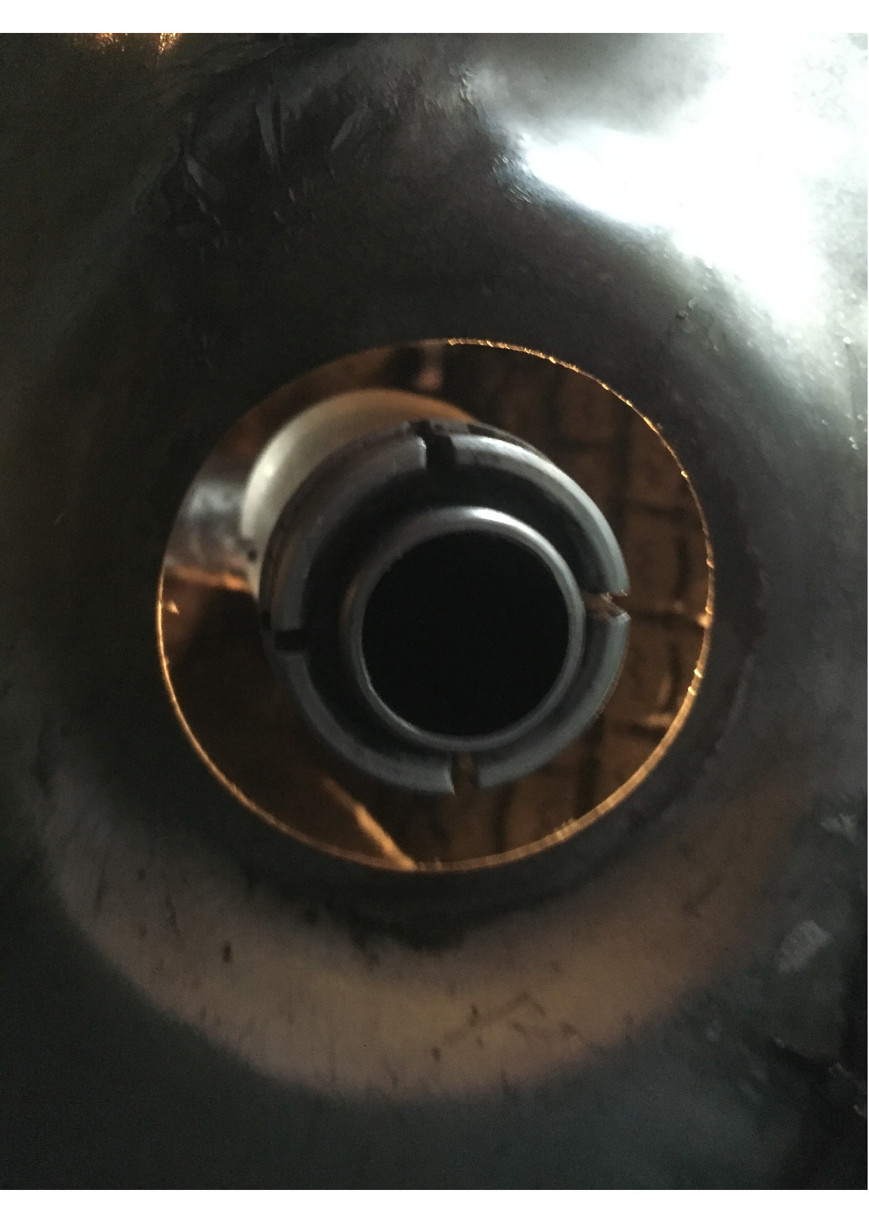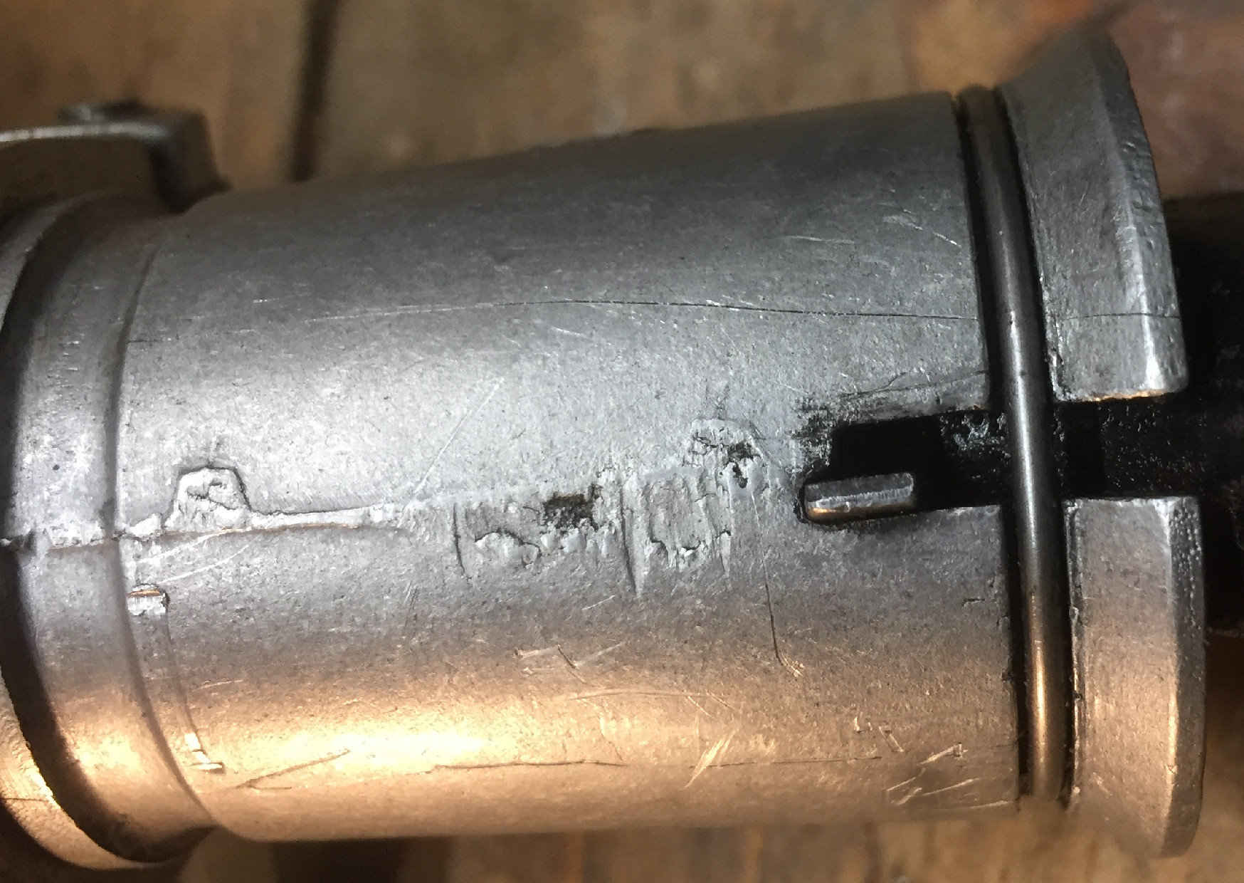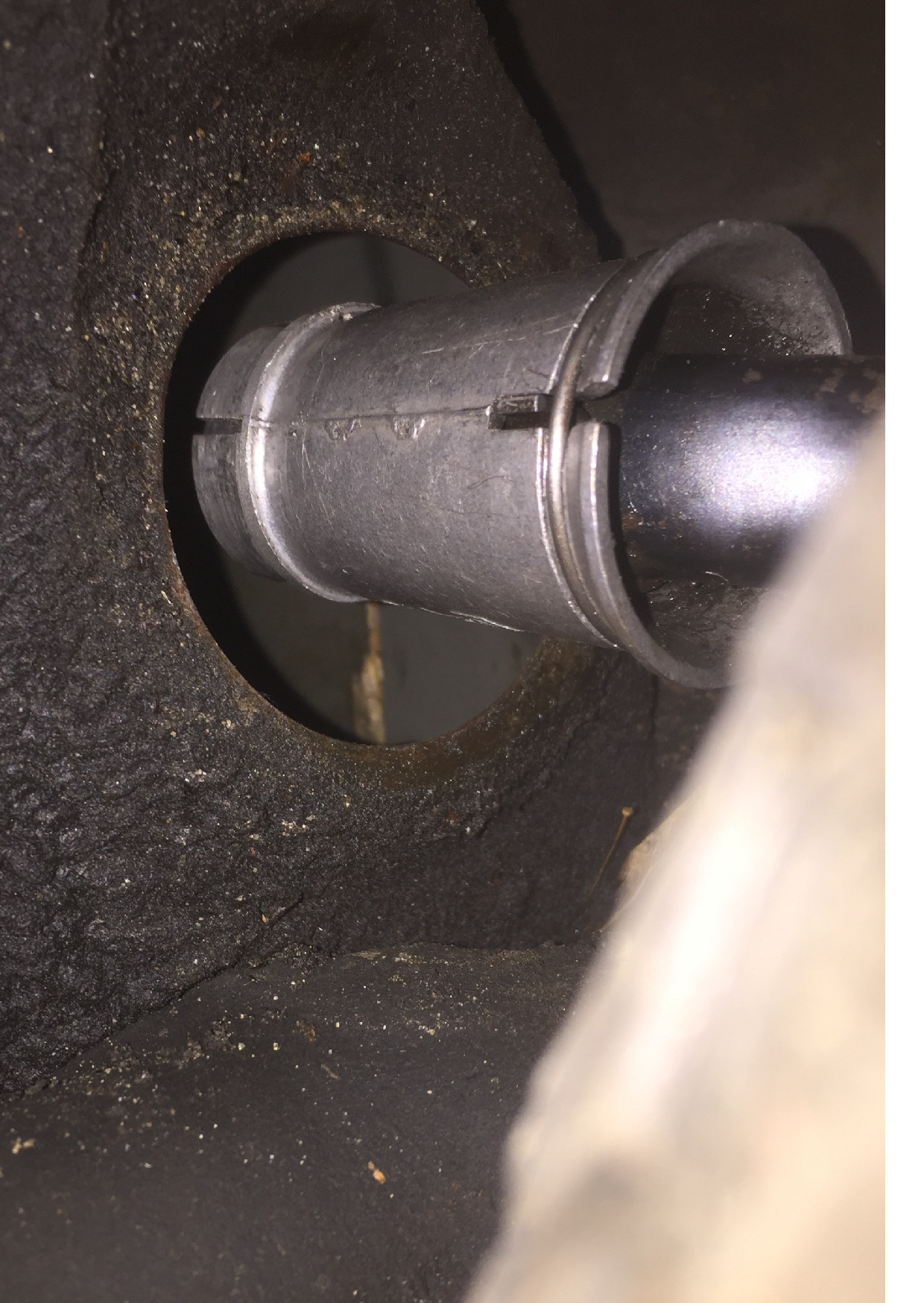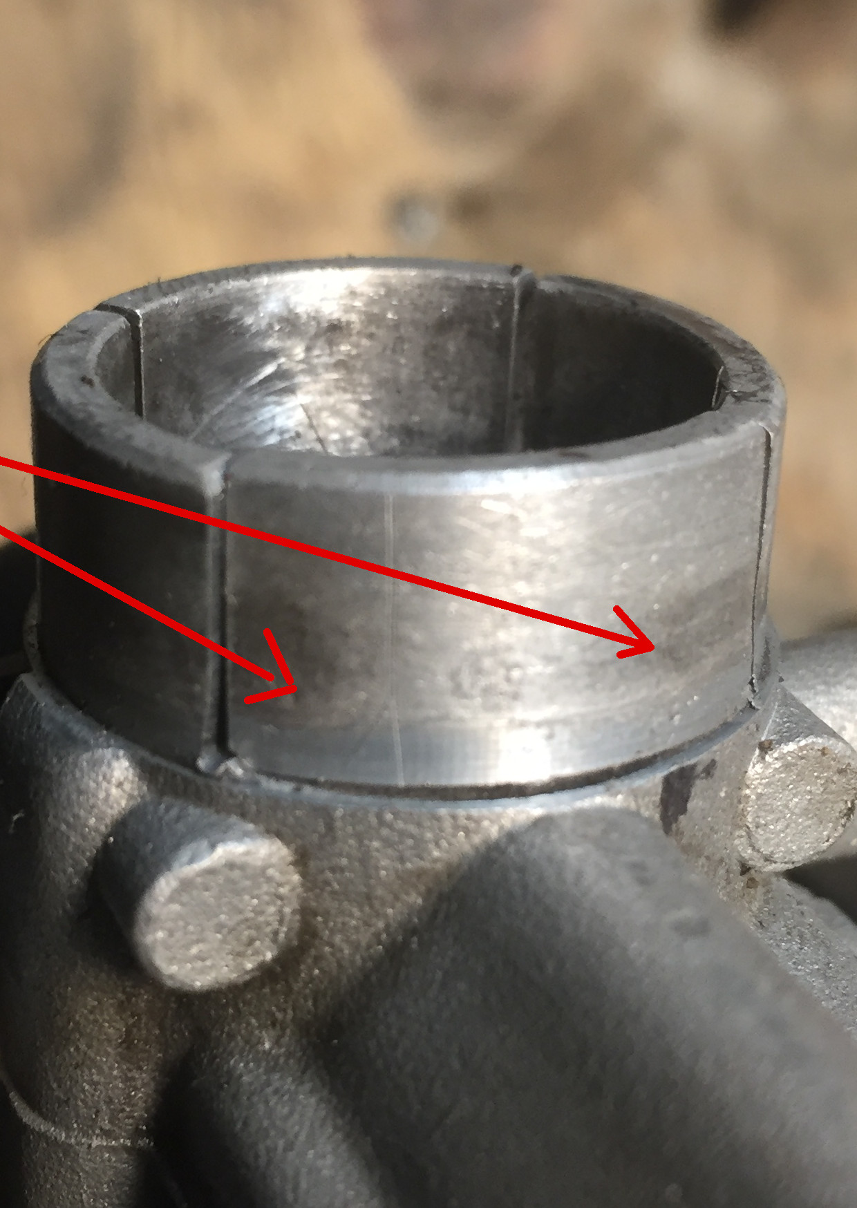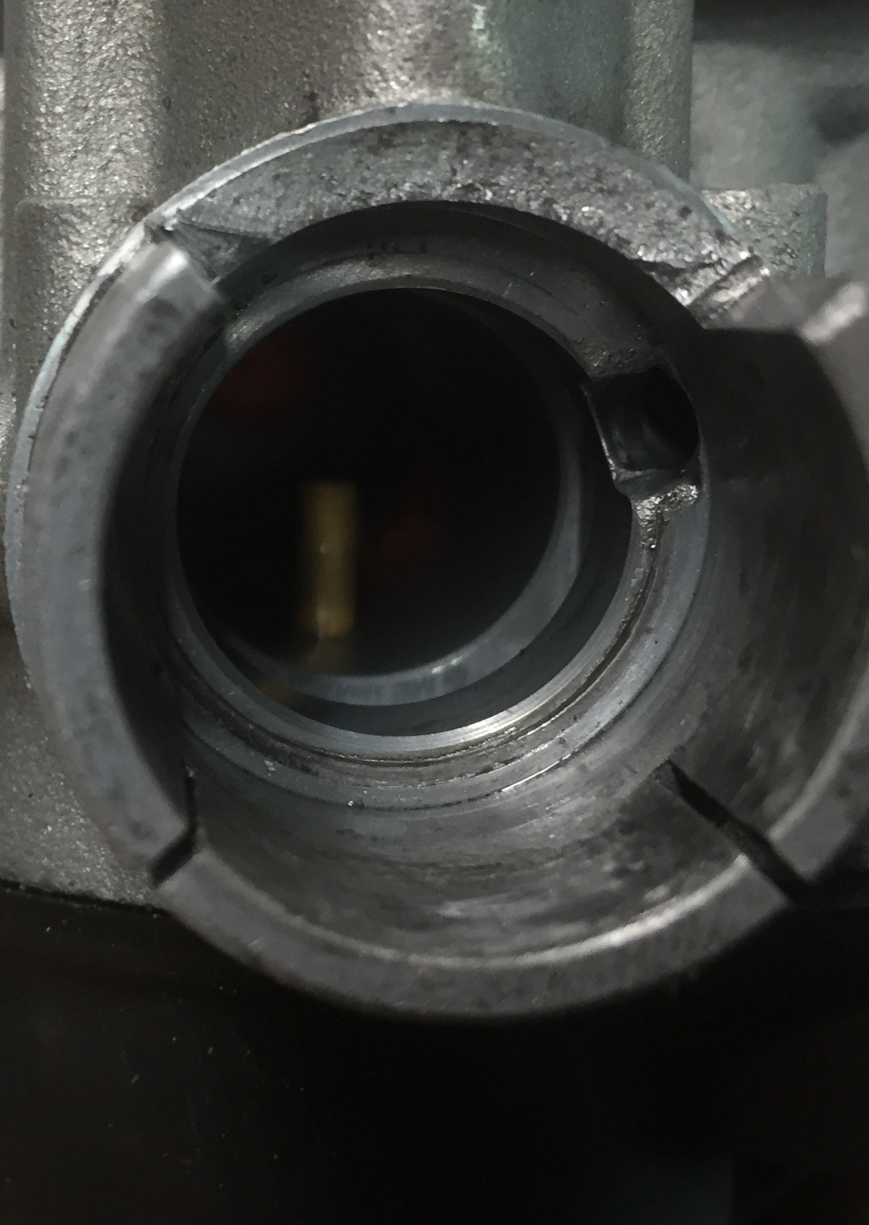 Bild 8 Pittingspuren auch im Inneren des Vergaserflansches wo der Ansaugstutzen beim Zusammenstecken scheinbar aufsitzt trotz Filzring im Innern der Hülse ?