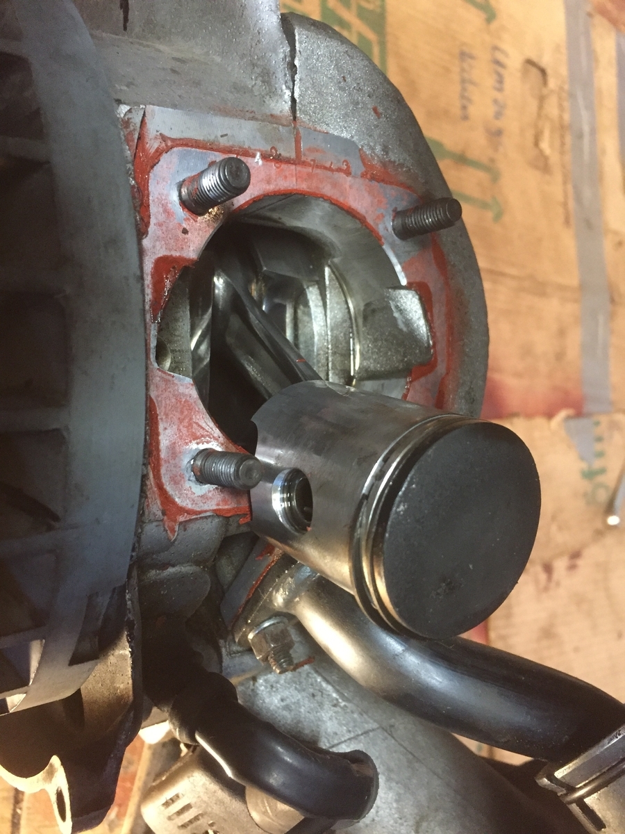 jetzt ist der Zylinder wieder drauf und wie gewünscht Fotos vom alten Zylinder. Auf der Innenseite des Zylinders gibt es an der Stelle wo Außen mit Dirko abgedichtet wurde (Zwischraum der letzten Rippe und Fußausbildung über dem Auslass) ein winziges Nest an Punkten, schwer zu fotografieren,die aber tatsbar sind. Ich schätze hier war es undicht. Frage: Ich will den Motor den ich jetzt ausgebaut habe abdrücken (mit Hausmitteln, dh keine Druckluft vorhanden) wie gehe ich vor, welche Stellung muß der Kolben haben? Ich habe schon mal in das Ansaugrohr geblasen und dabei die Kurbelwelle gedreht (das ist wahre Liebe zu einer Vespa!) Viel Widerstand ist da nicht außer der Kolben steht direkt vor dem Ansaugkanal. ???