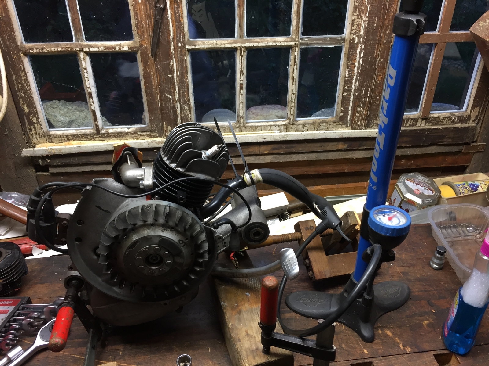 Habe Heute Zeit gefunden den Motor abzudrücken.Mir ging es hauptsächlich drum ob Innen die Dichtung zum Getriebe und der Kubelwellensimmerring den Druck halten. Ich habe folgendes gemacht: Alles abgedichtet von Außen rund um den Kubelwellenraum : Platte auf den Krümmer mit Dichtung, Kerze mit Dirko eingeschraubt und auf den ASS Fahrradschlauch und ca.0,5-1bar mit der Pumpe darufgegeben. Nach anfänglichger Undichttigkeit am ASS blieb der Druck 10 Min. unverändert bei verschiedenen Stellungen der Kurbelwelle . Absprühen mit Spüli am Fuß,ASS,Simmerring hinter der Lima und am Krümmer ohne Auffälligkeit . Entweder habe ich was komplett falsch gemacht oder der Motor ist einigermaßen dicht.