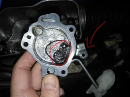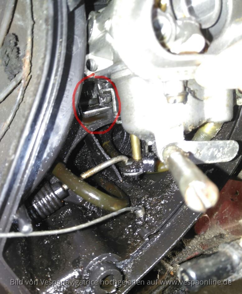 Die Beilagscheiben sind mit verschraubt, unter dem Sprengring. Auf dem Photo hatte ich gerade getestet, wo welche Schrauben in die Vergaserwanne passen, damit ich keine über habe. Die Zeit über lagerten alle Schrauben brav in einer Magnetschale. Das mit Murphys Law ist völlig richtig - und erschreckend.