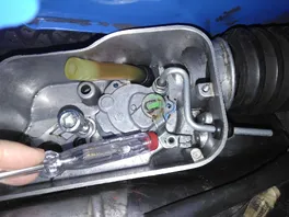 Ah, ok, vielen Dank! Der Benzinschlauch fühlt sich tatsächlich etwas eigenartig an. Muß eh bald ein paar Meter Schlauch für ein anderes Projekt bestellen. Sprit ist auch noch nicht im Tank, das paßt gut.