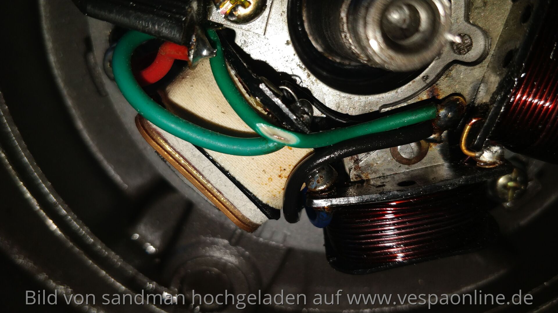 Ich werde mir mal den grünen Draht vornehmen, wurde wohl abgeschliffen vom Polrad.
