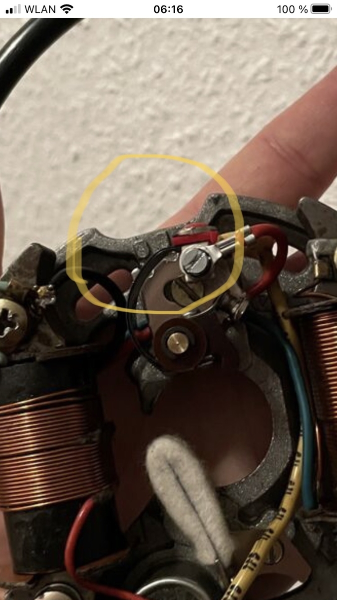 Guck mal Kollege! Das ist deine ZGP! Du hast da oben rechts zwei Kerben( Hubel oder Wie auch immer du es nennen magst) und am Block ist „ eine“ ( 1ne) fest eingegossen … diese stellst, schienst drehst du genau zwischen die beiden von deiner ZGP, dann hast du die Gyrundstellzng der Zündung erreicht , dass der Motor anspringen soll, ohne vorher abzublitzen ….