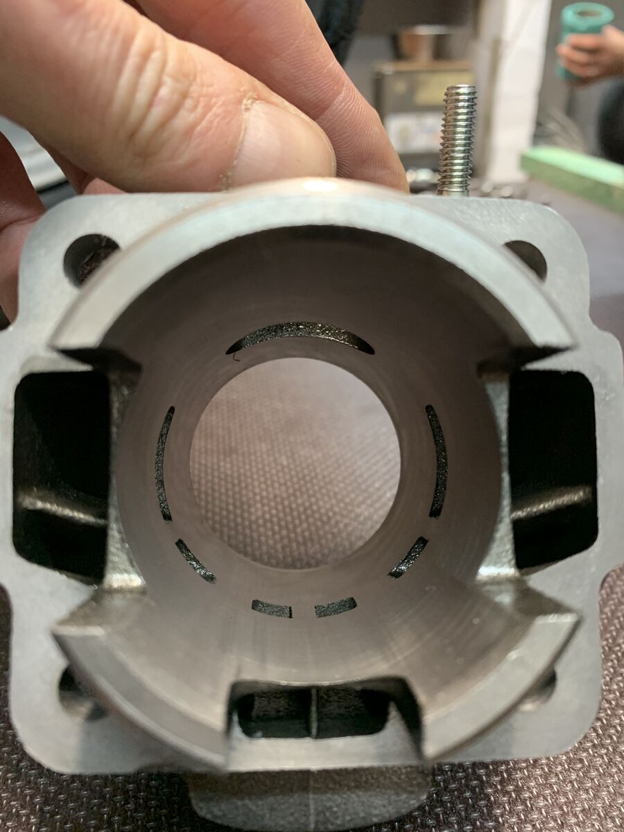Was ich in einer Beschreibung vom Polini gelesen habe das man ihm durch einen 1 mm Spacer unterm Fuß helfen kann auf Drehzahl zu kommen um die Steuerzeiten bzw die Kanäle mehr frei zu legen und den mm oben am Rand abdrehen sollte.