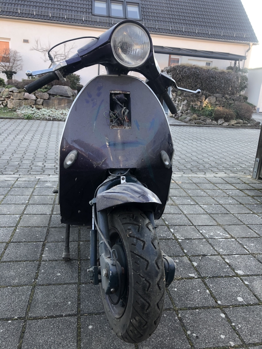 Eine Überlegung war auch, ein komplett neuen Rahmen oder doch nur das vordere Schild auszutauschen, um die schöne Vespa-Optik wieder hinzubekommen...