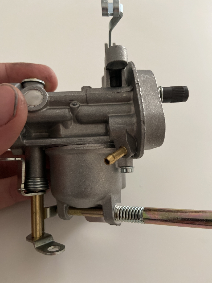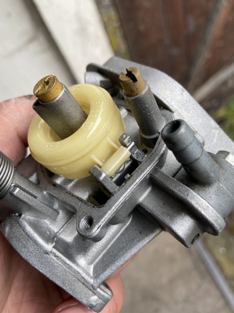Dichtung ist nur an der Schwimmerkammer und an dem Anschluss für den Spritschlauch, wo die Schraube reinkommt. Ansonsten nur die Papierdichtung zwischen Vergaser und Motorgehäuse.