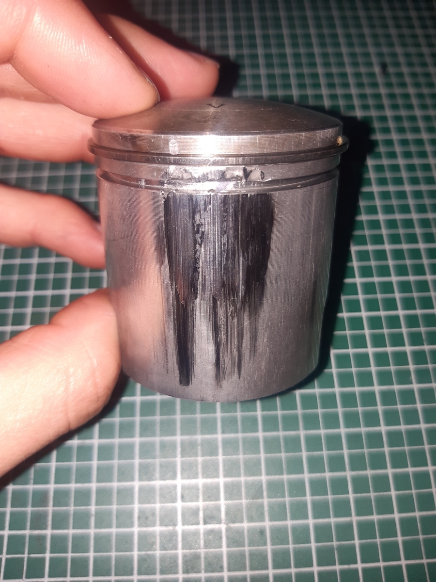 als ich mir dem Kolben angeguckt habe ist mir aufgefallen, dass der untere Kolbenring auf der Auslasseite Gebrochen war.