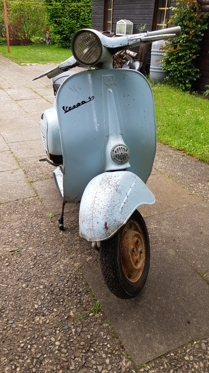 Zu den Eckdaten. Es ist eine V50 von 1968. Der Roller hat noch OLack. Aber klar sieht er nicht mehr aus wie neu. Aber ich mag diesen Charme mit Flugrost.