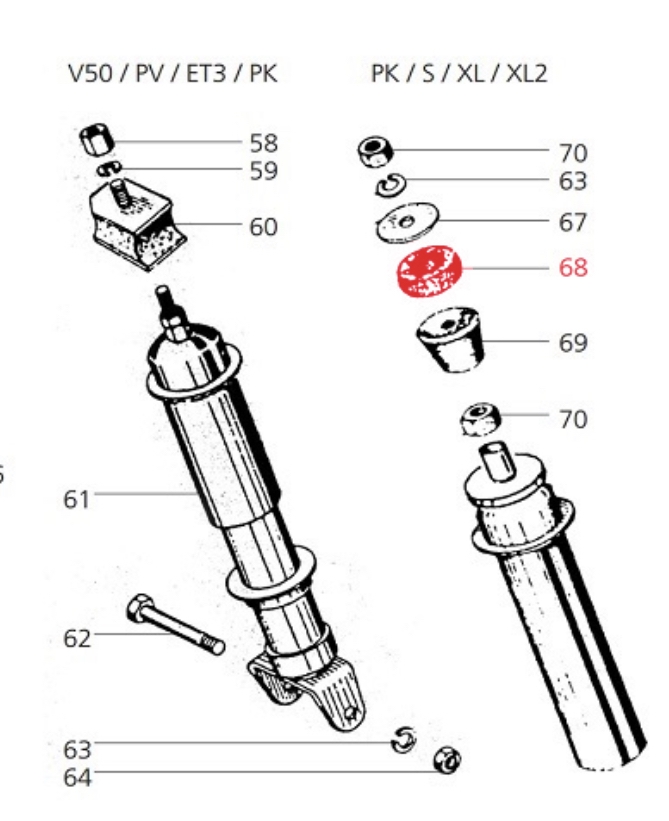 Der originale Silentblock führt dazu, dass das Federbein zu lang wird und am Motor ansteht.