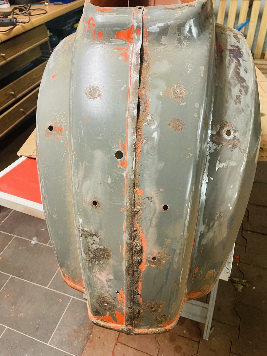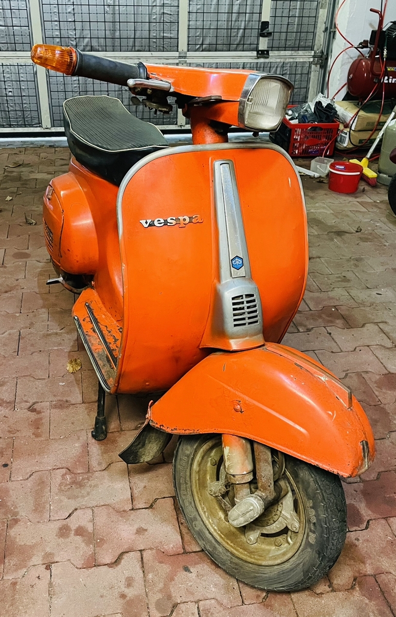 Ein Kumpel, der schon zig Oldtimer Autos und auch das ein oder oder Zweirad (auch Vespa)In Stand gesetzt hat, übernimmt für mich die Schweiß und Blecharbeiten: