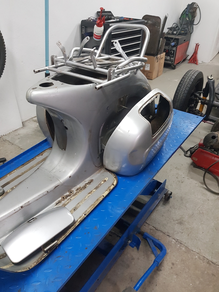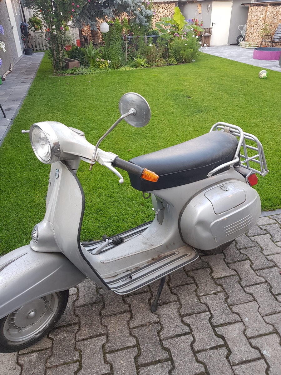 Die Vespa ist leider nicht mehr im O-Lack. Sie wurde schon öfter nachlackiert und gespachtelt. Der Rost platzt auch an vielen Stellen durch. Die Beulen möchte ich ebenfalls raushauen.